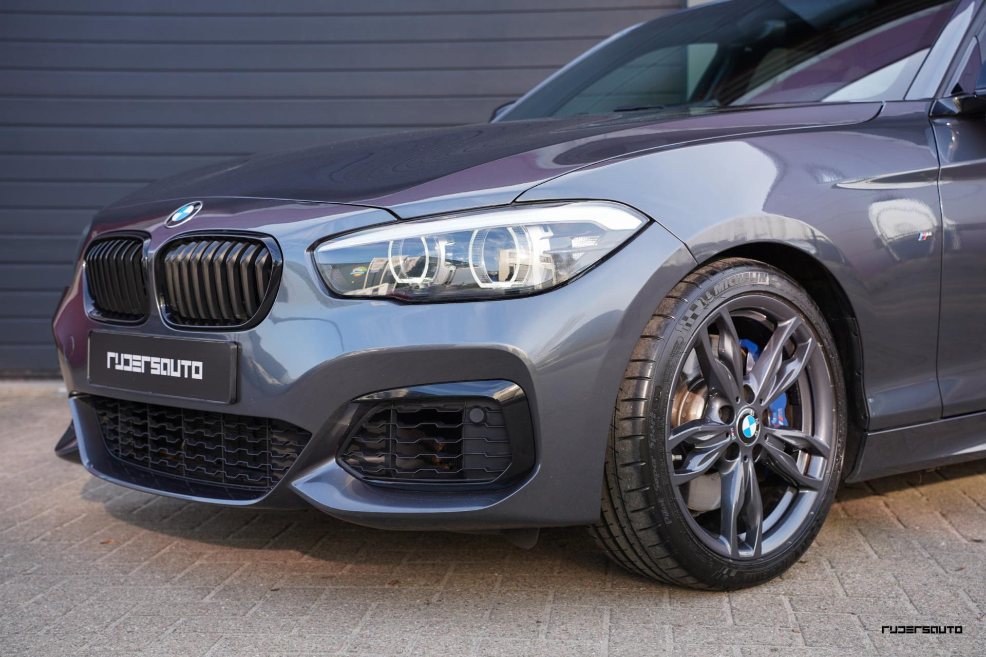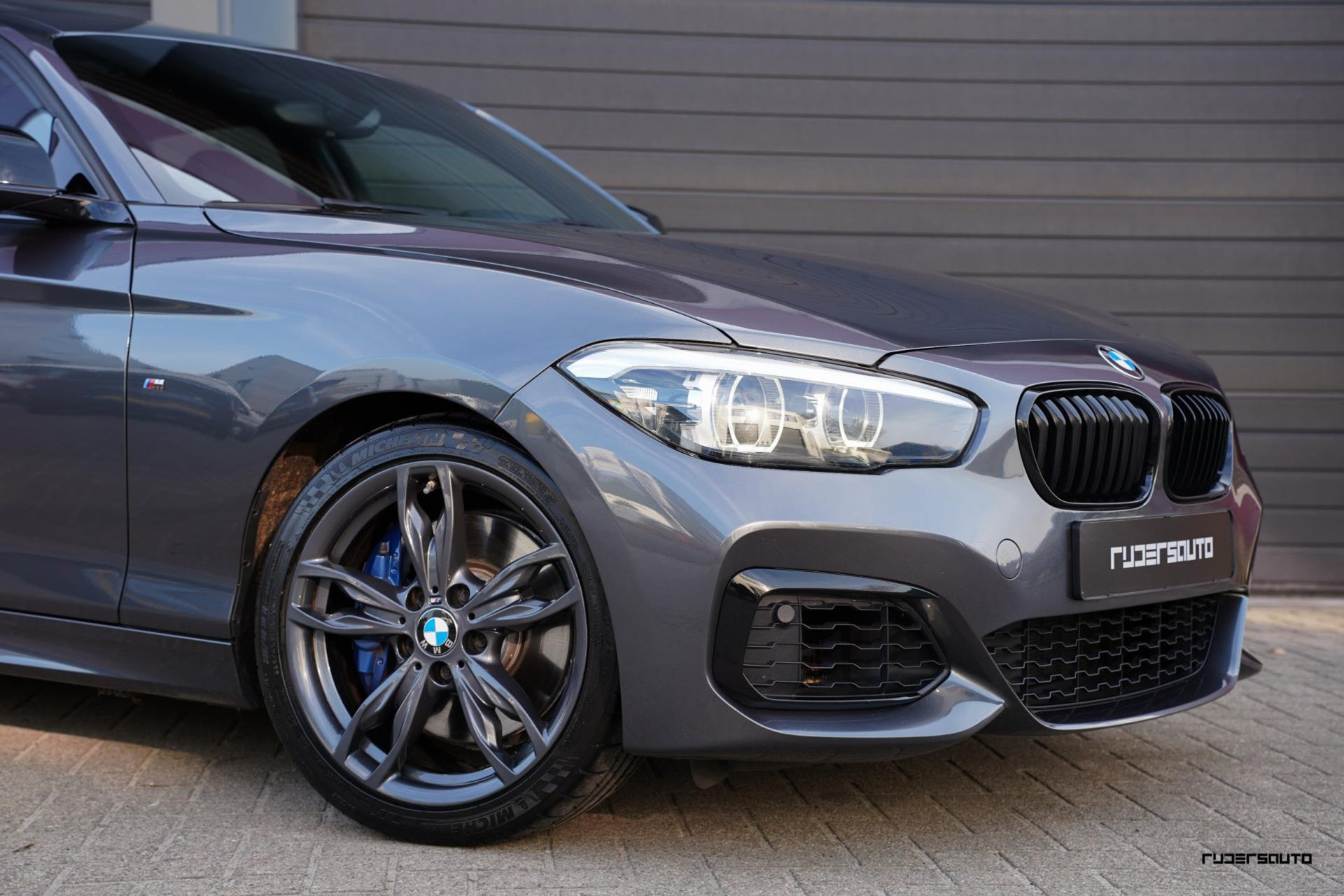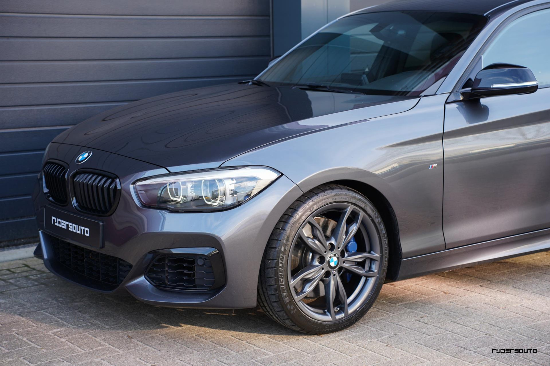 Een sportieve en stijlvolle combinatie, zeker ook omdat bij deze M140i de spiegelkappen en canards in de voorbumper hoogglans zwart zijn gemaakt, oog voor detail...