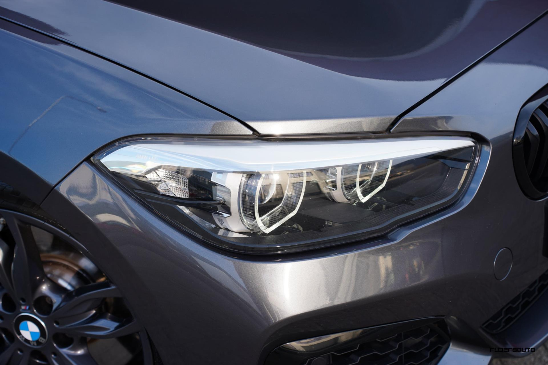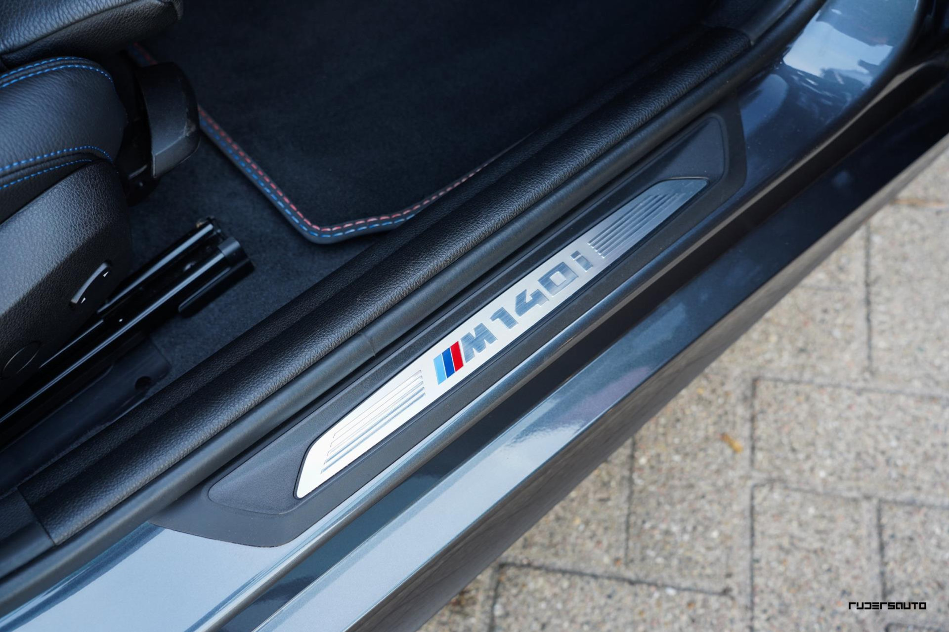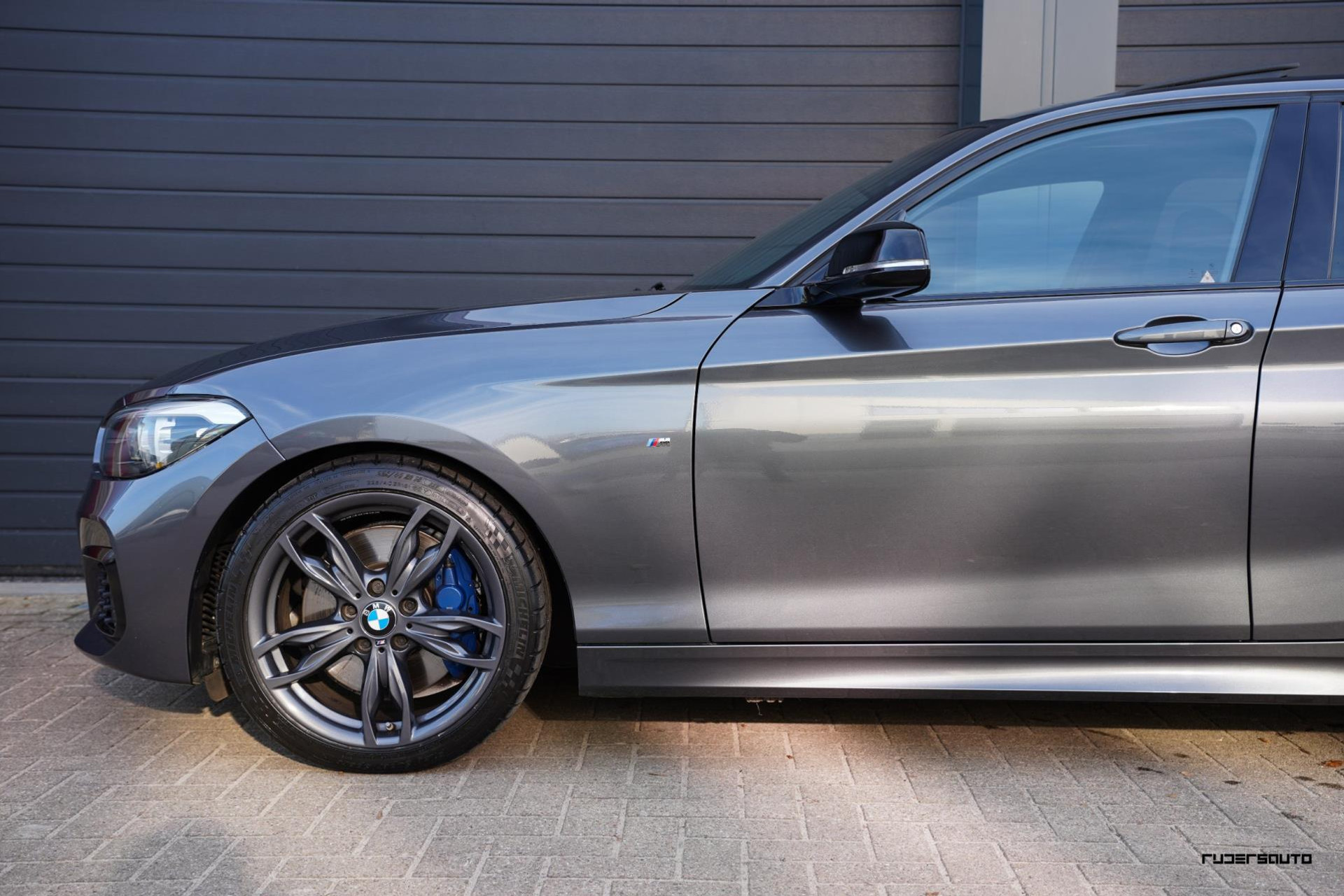 Een sportieve en stijlvolle combinatie, zeker ook omdat bij deze M140i de spiegelkappen en canards in de voorbumper hoogglans zwart zijn gemaakt, oog voor detail...