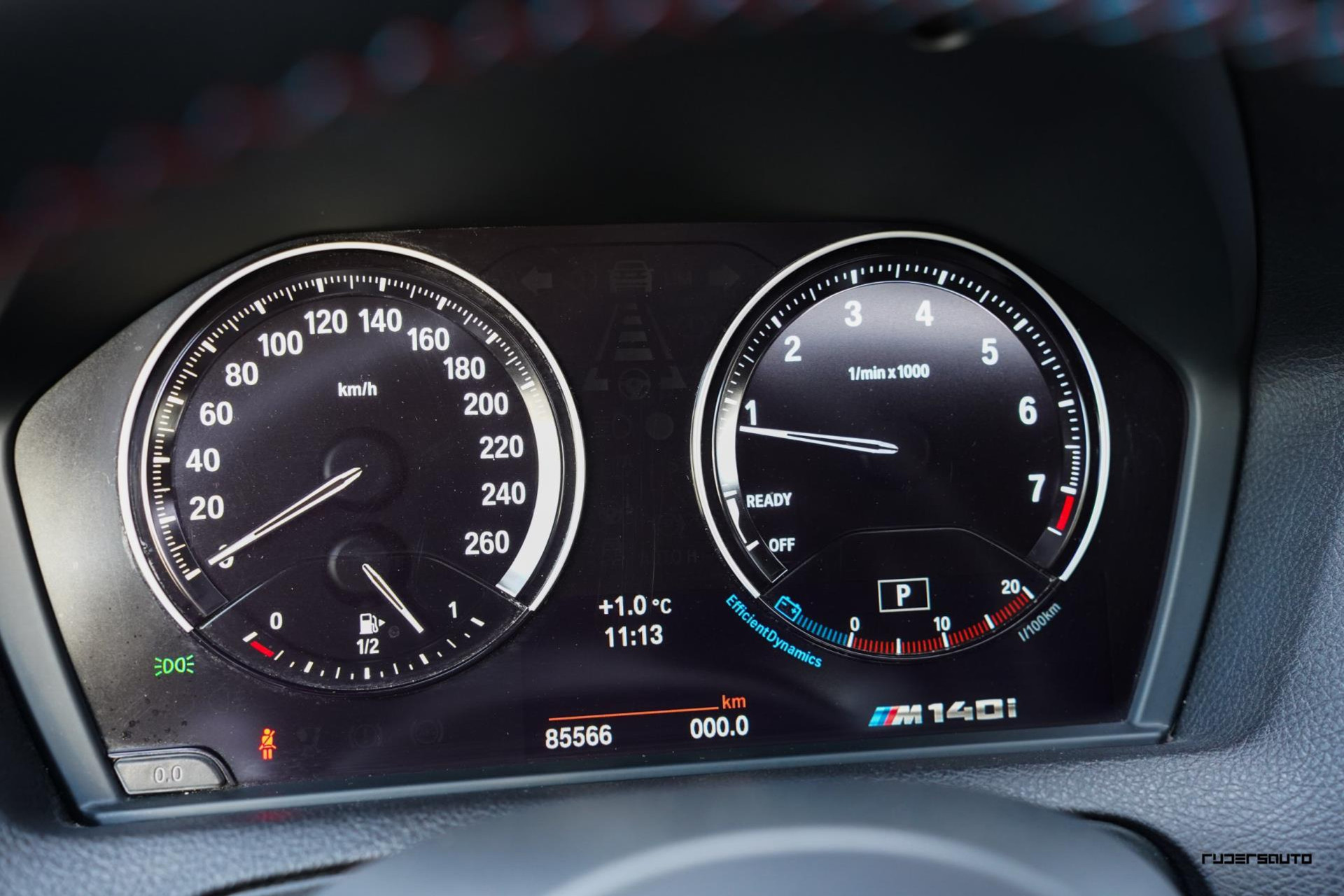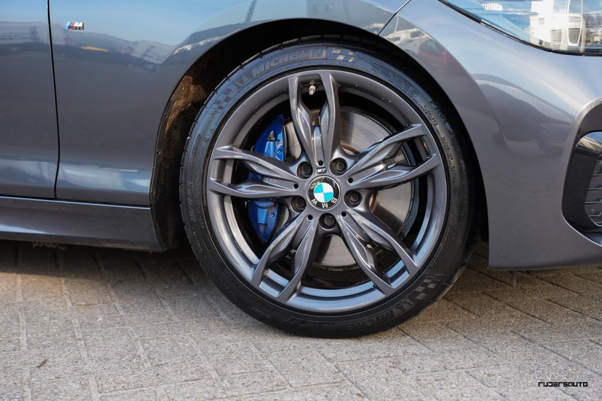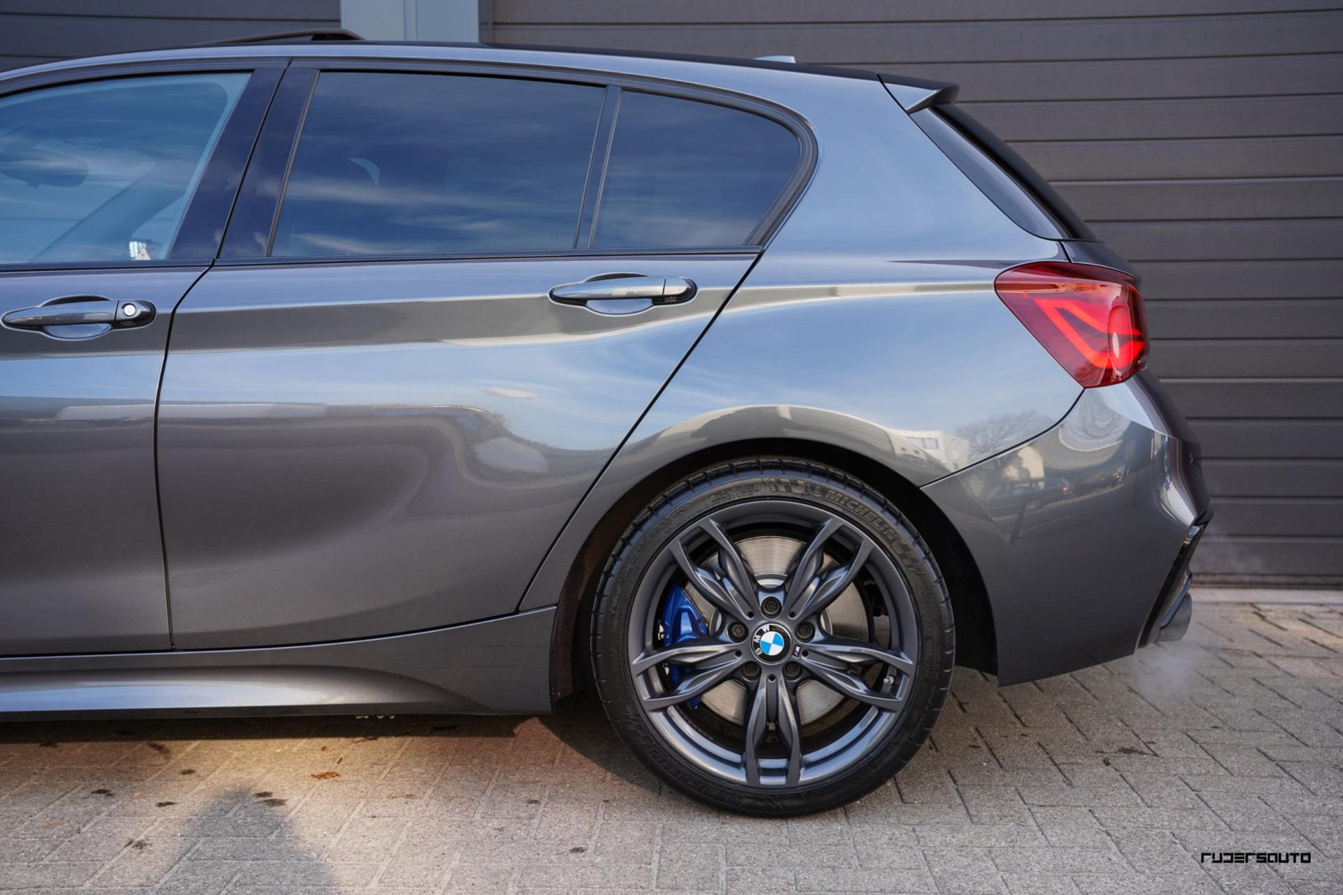 Aan fabrieksopties ook geen gebrek, zo is hij o.a voorzien van het glazen schuifdak, Harman Kardon audio, M-sport onderstel, lederen sportstoelen met blauwe stiksels, LED koplampen en als kers op de taart een Akrapovic uitlaatsysteem.
