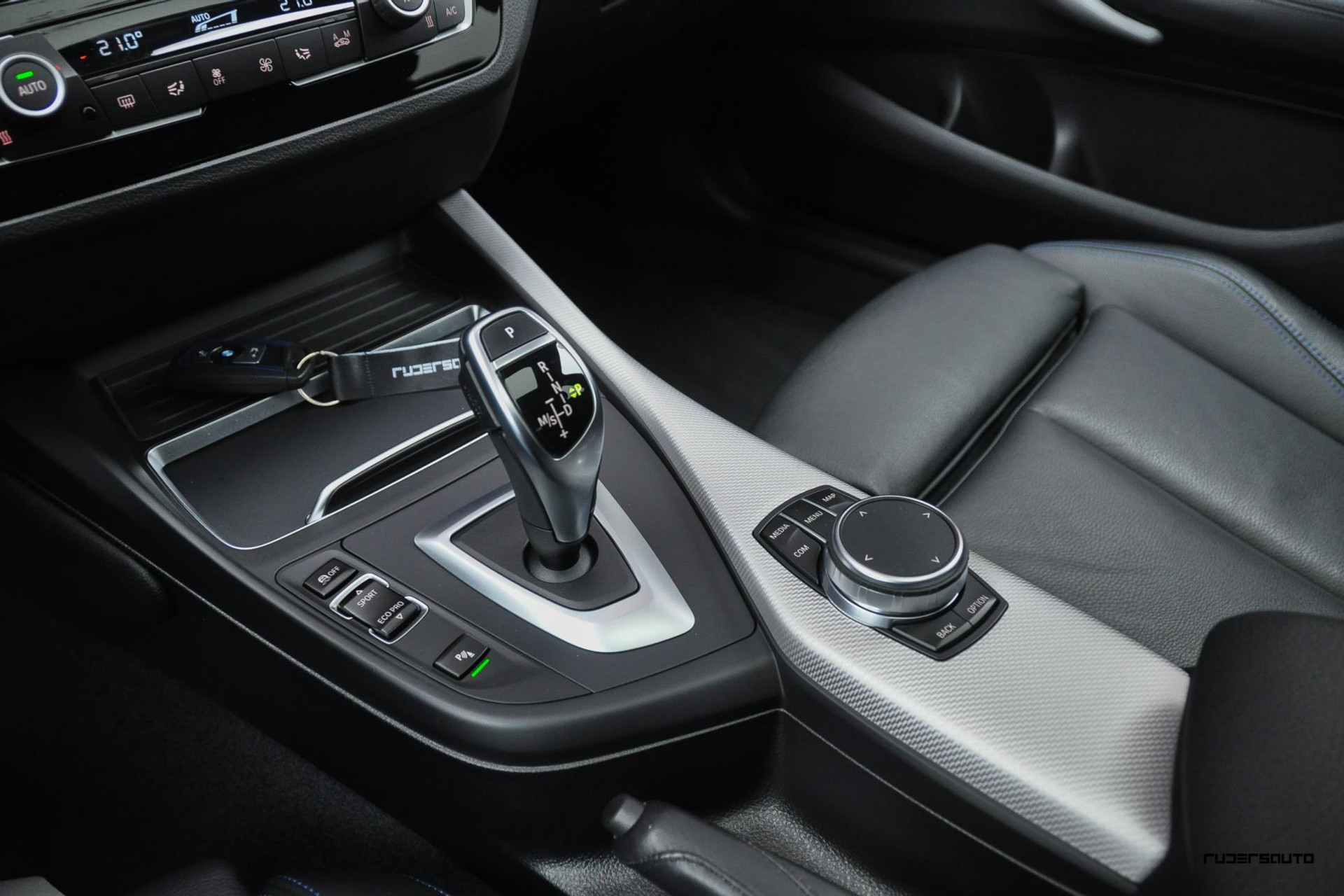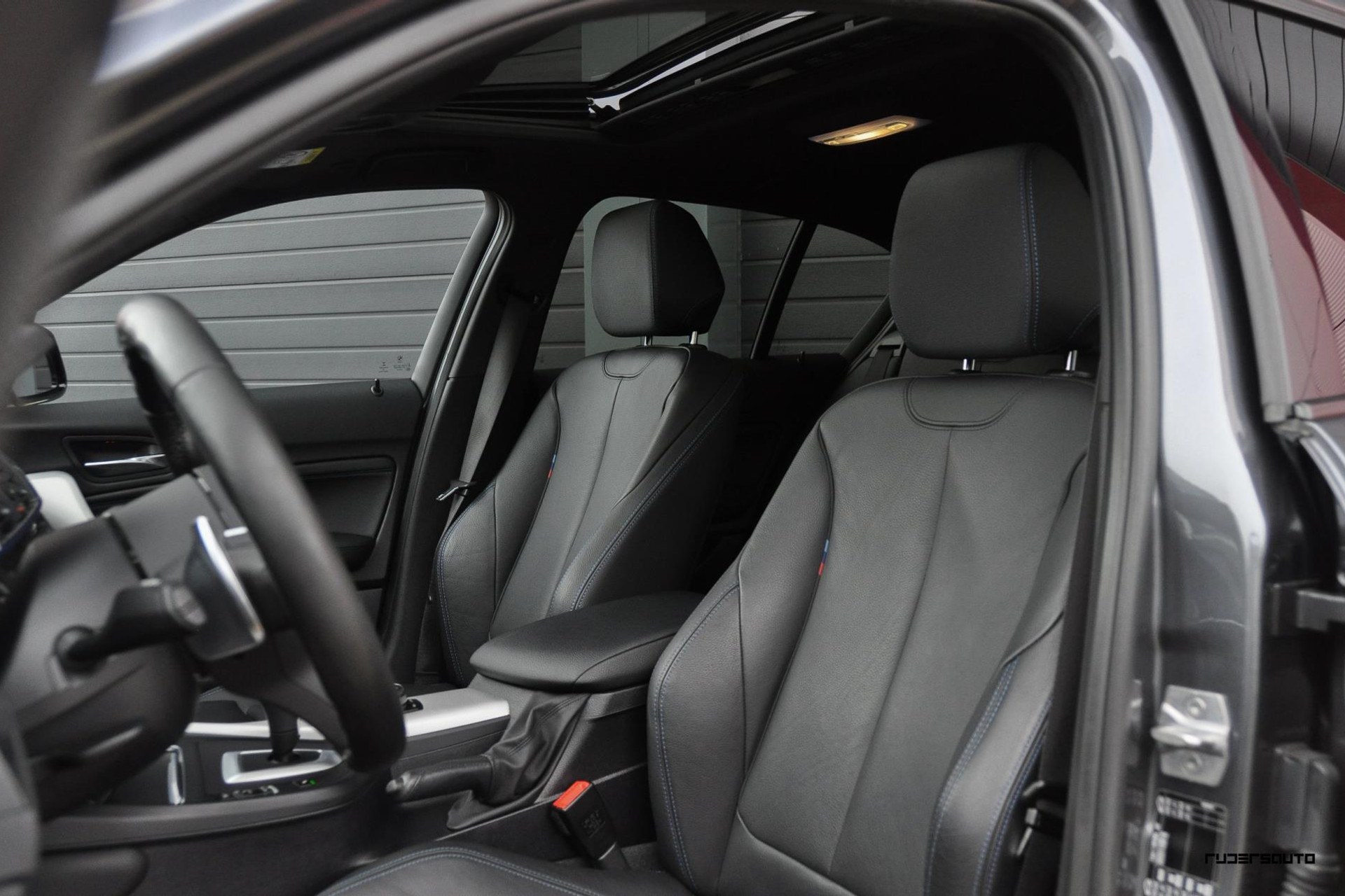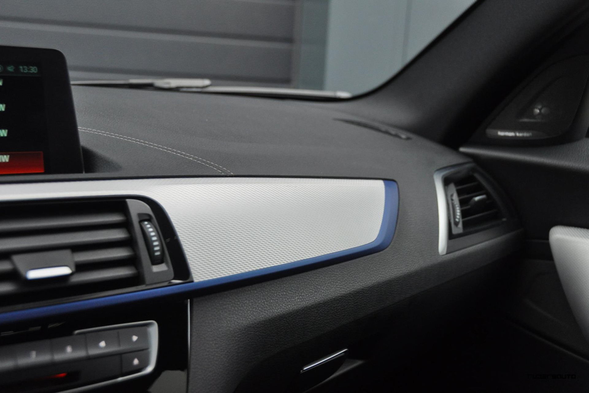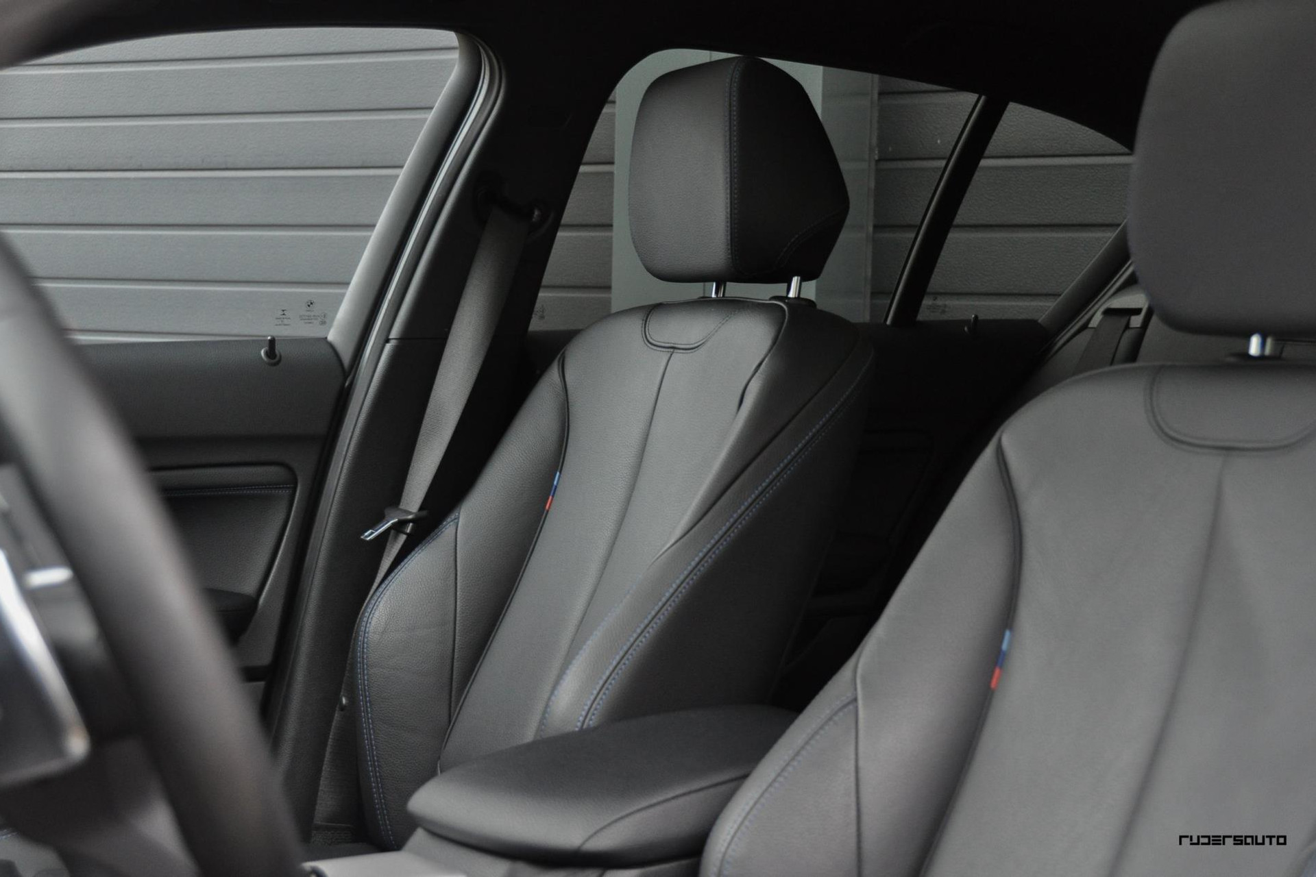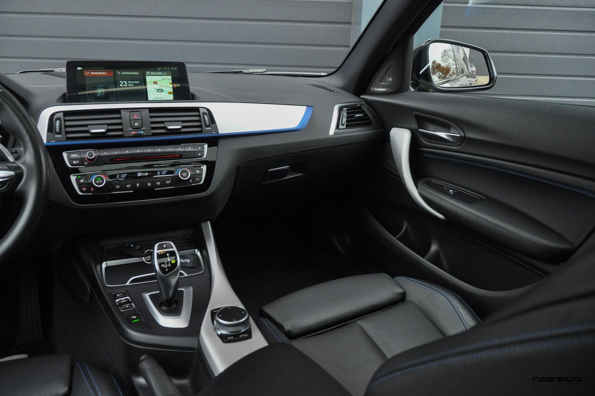 - Lederen sportstoelen met blauwe stiksels