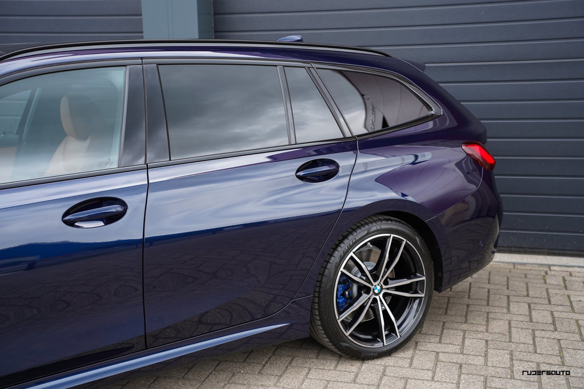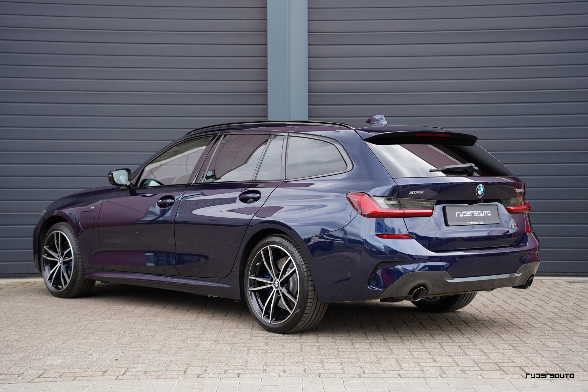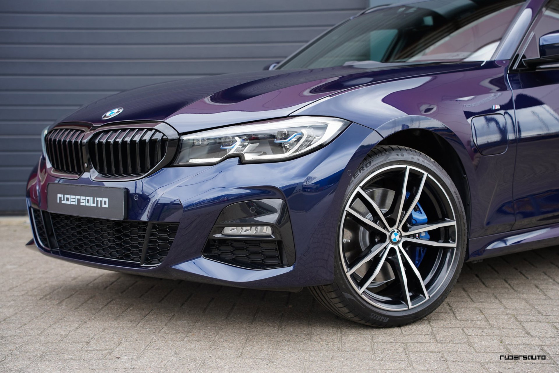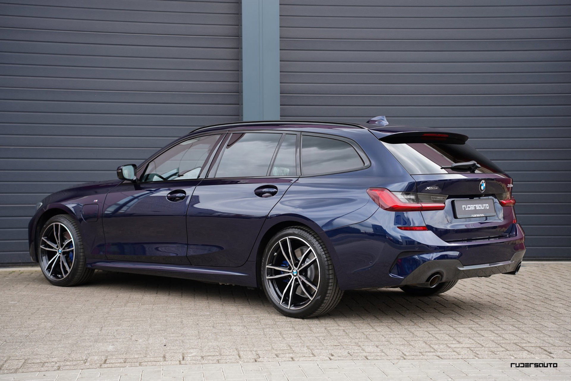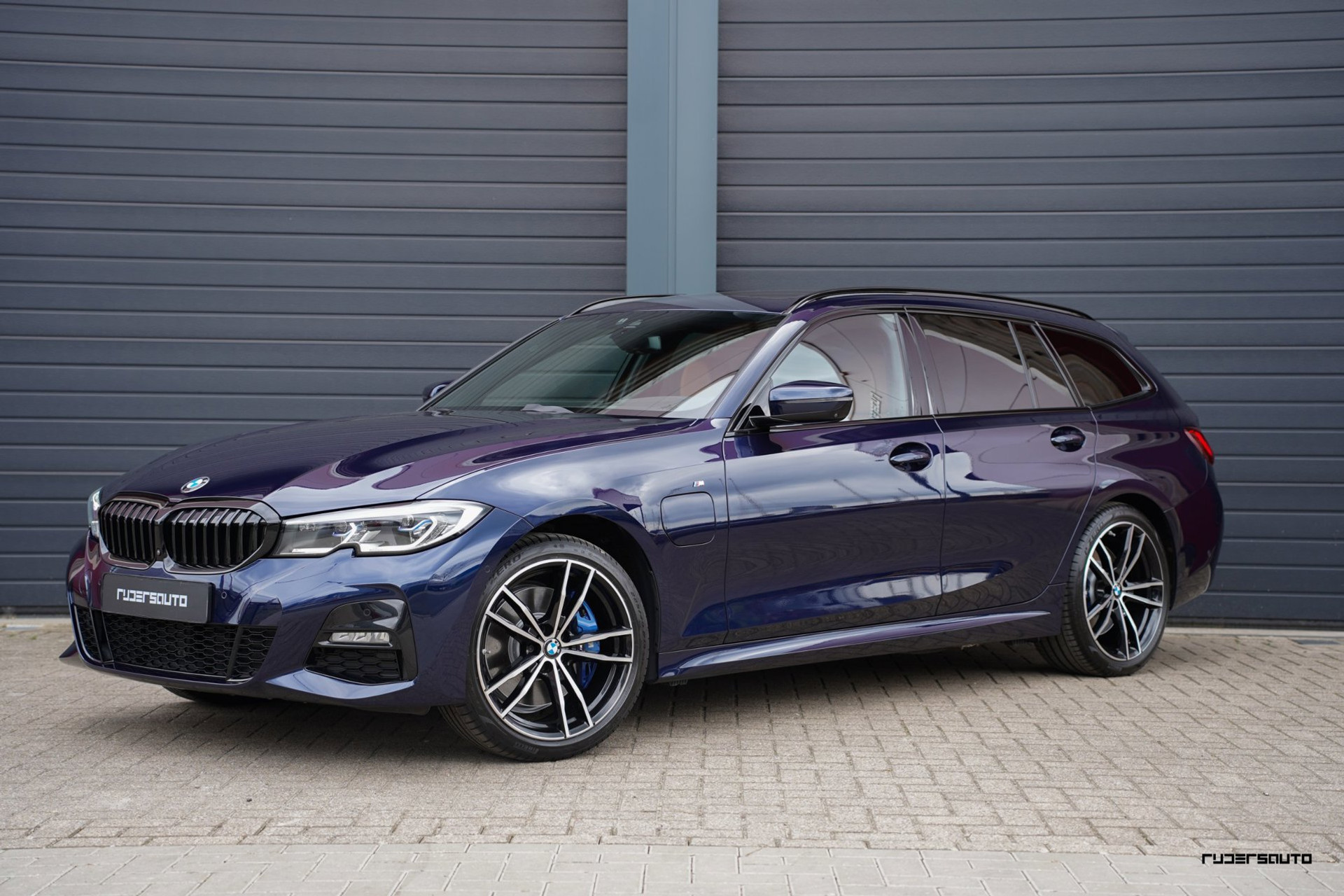 Rijk uitgevoerde BMW 330e xDrive Touring in Tanzanitblau met Cognac leder.