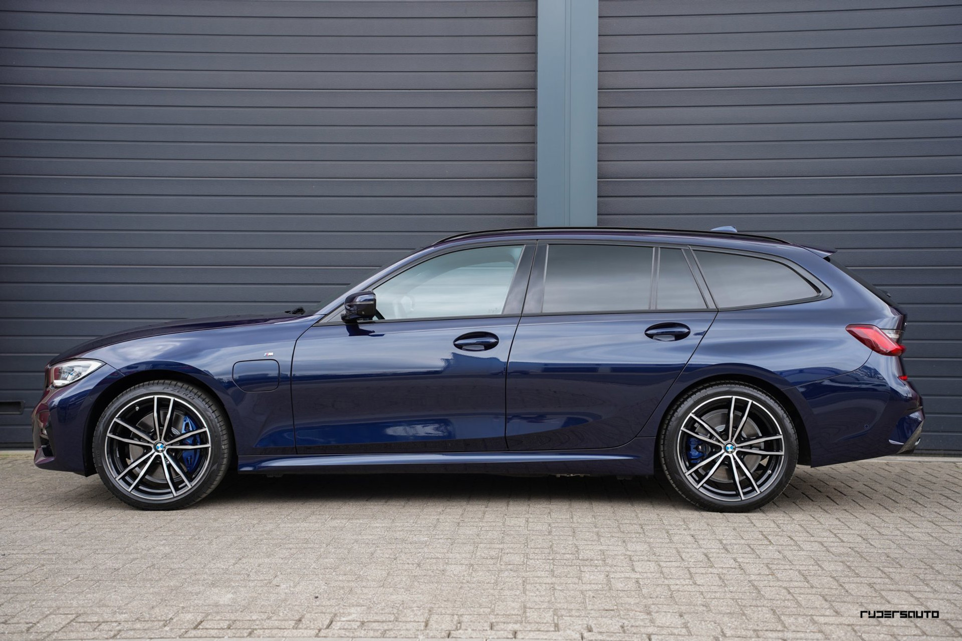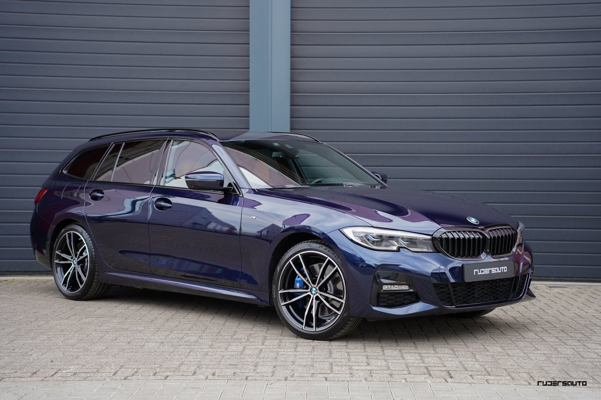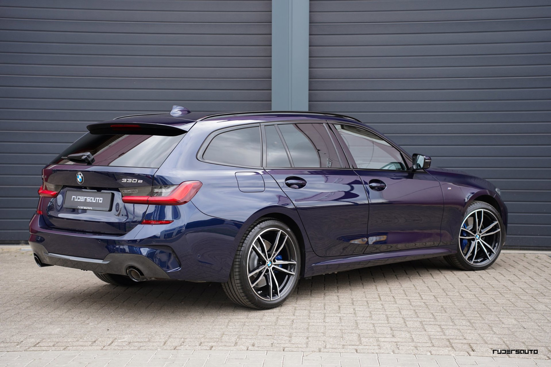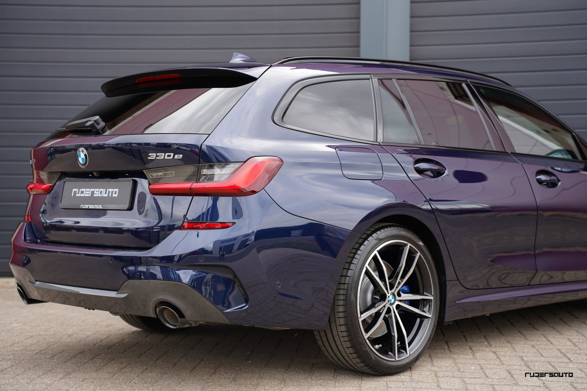 Rijk uitgevoerde BMW 330e xDrive Touring in Tanzanitblau met Cognac leder.