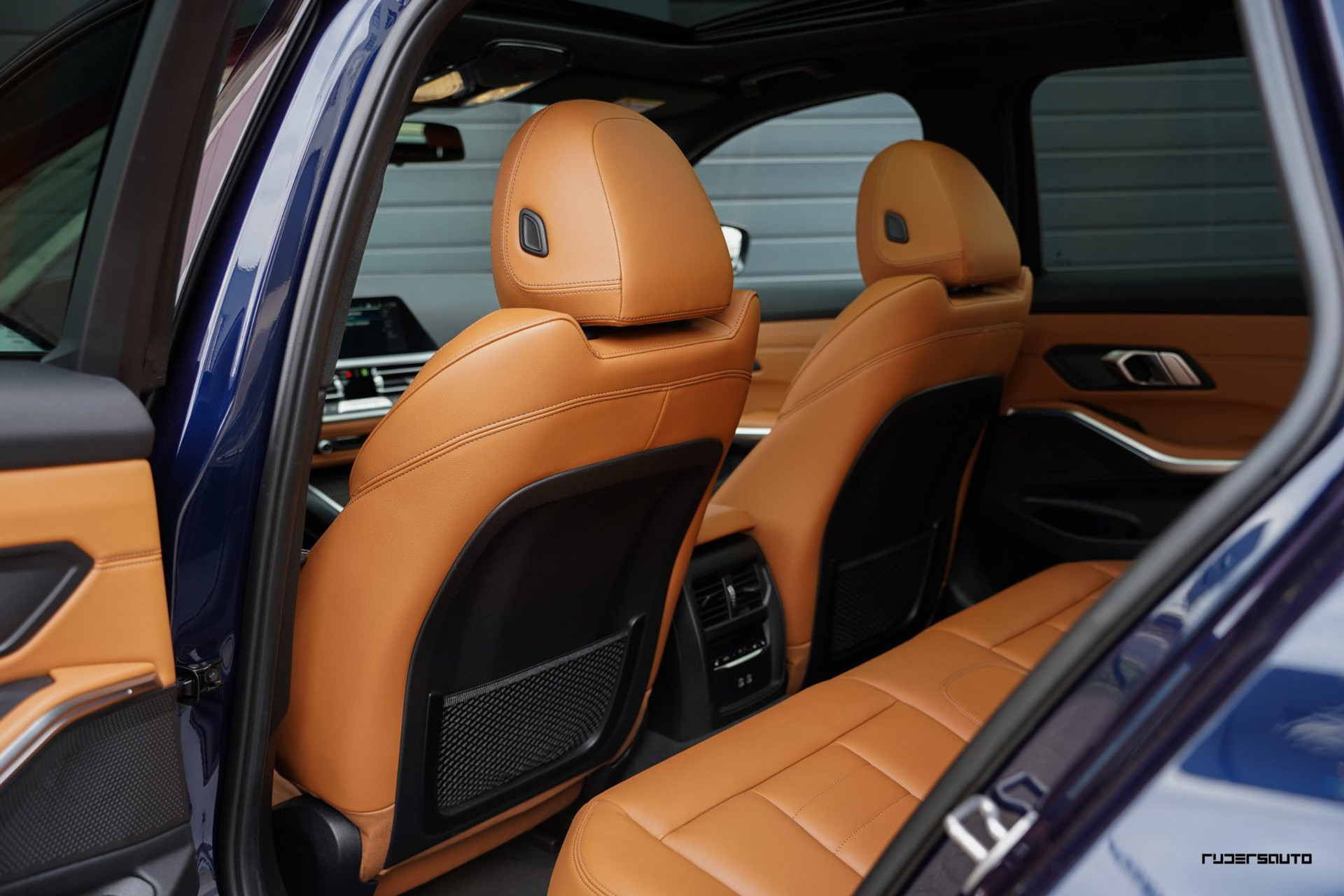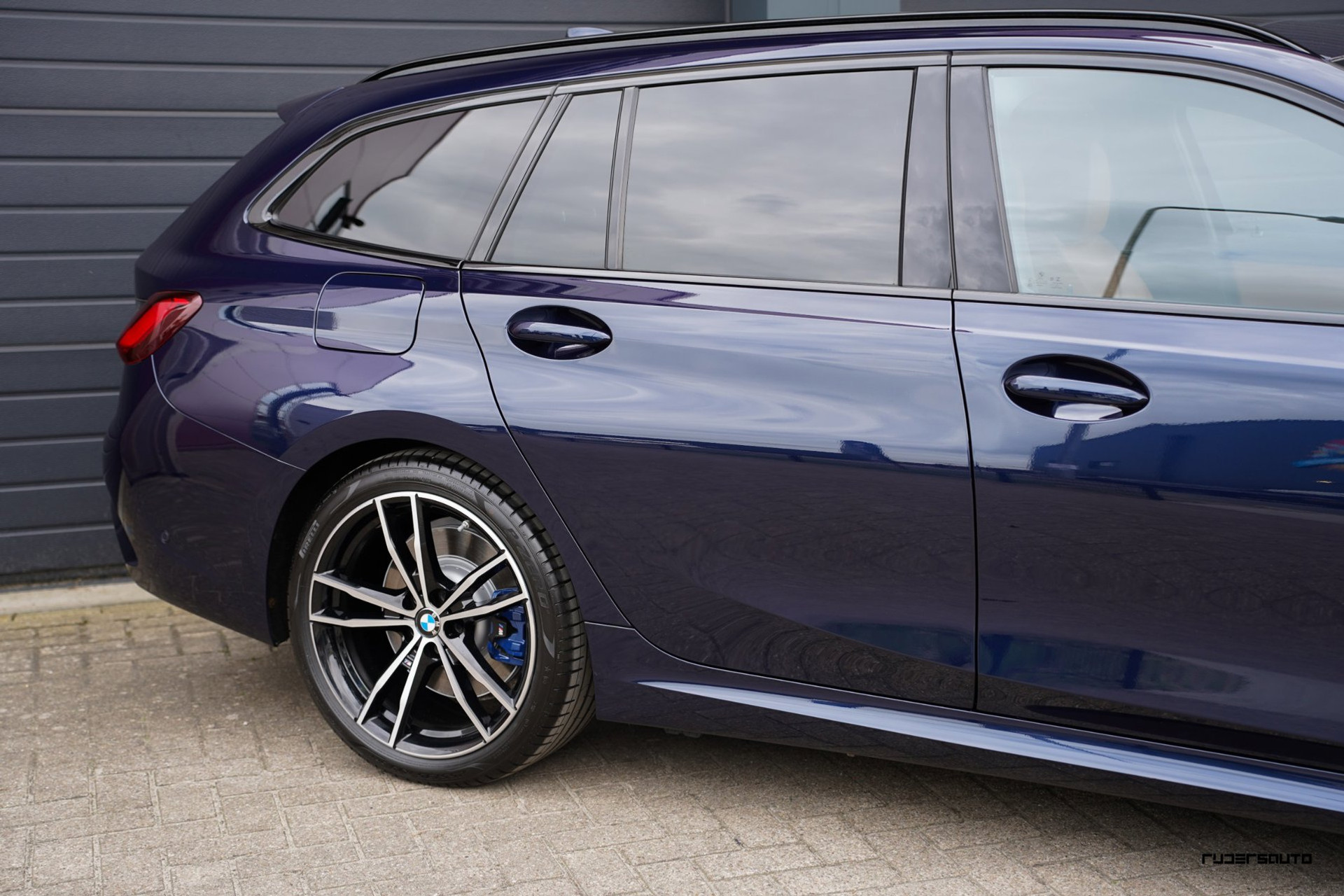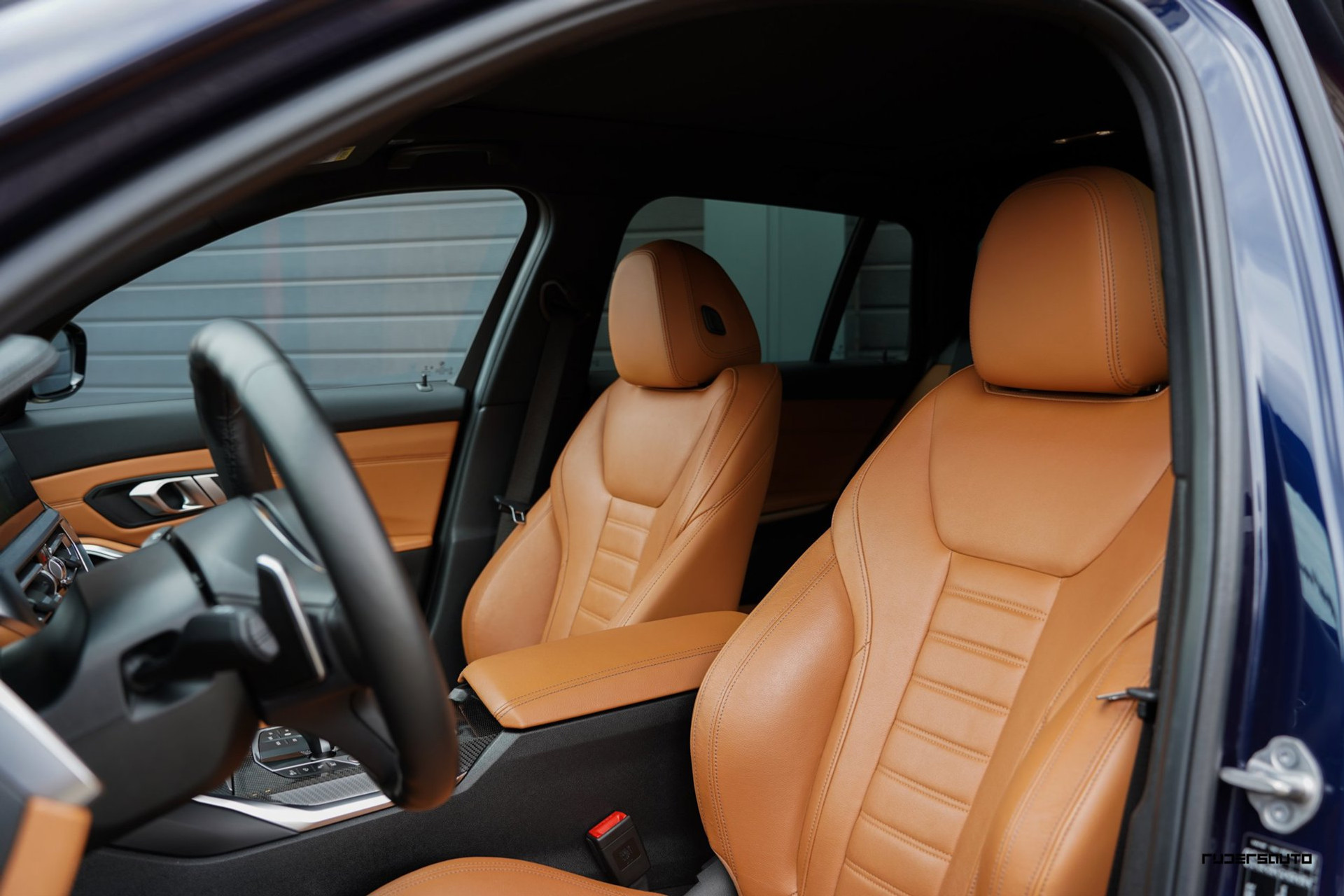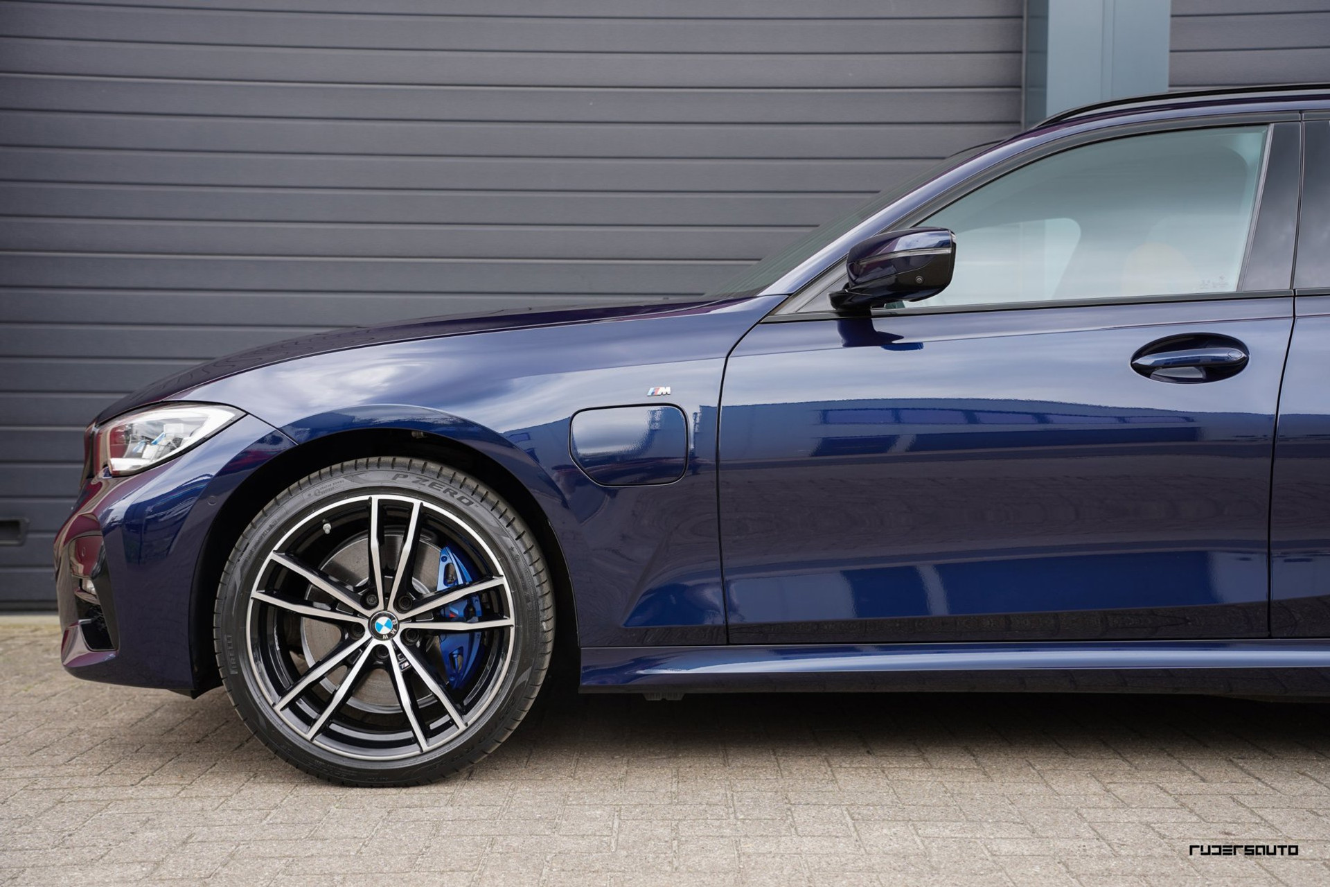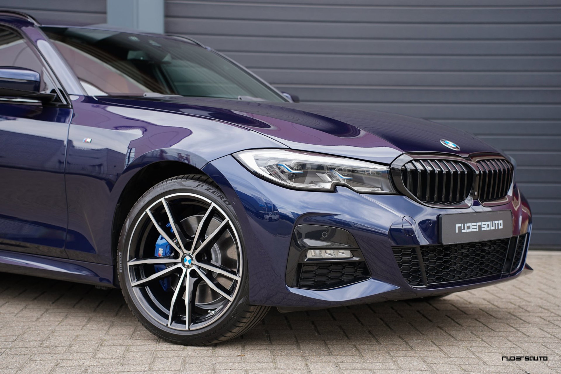 Rijk uitgevoerde BMW 330e xDrive Touring in Tanzanitblau met Cognac leder.