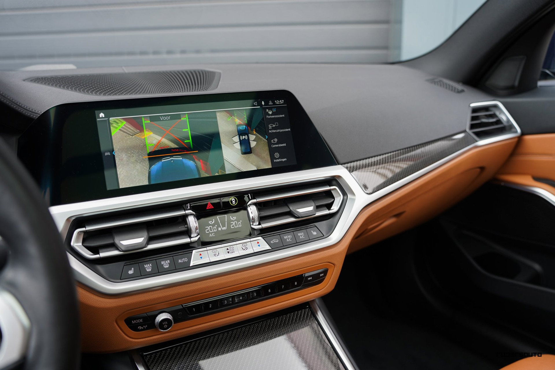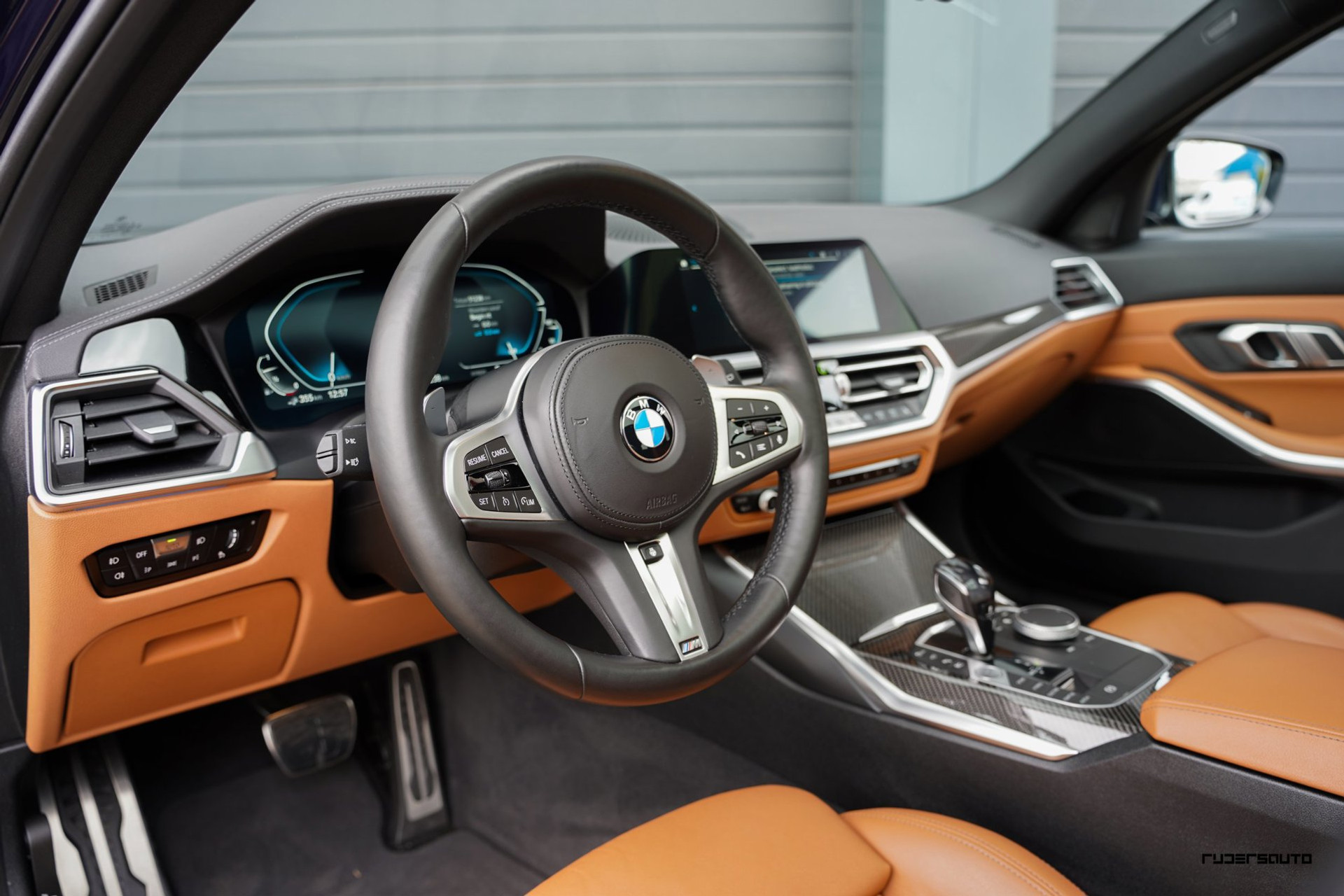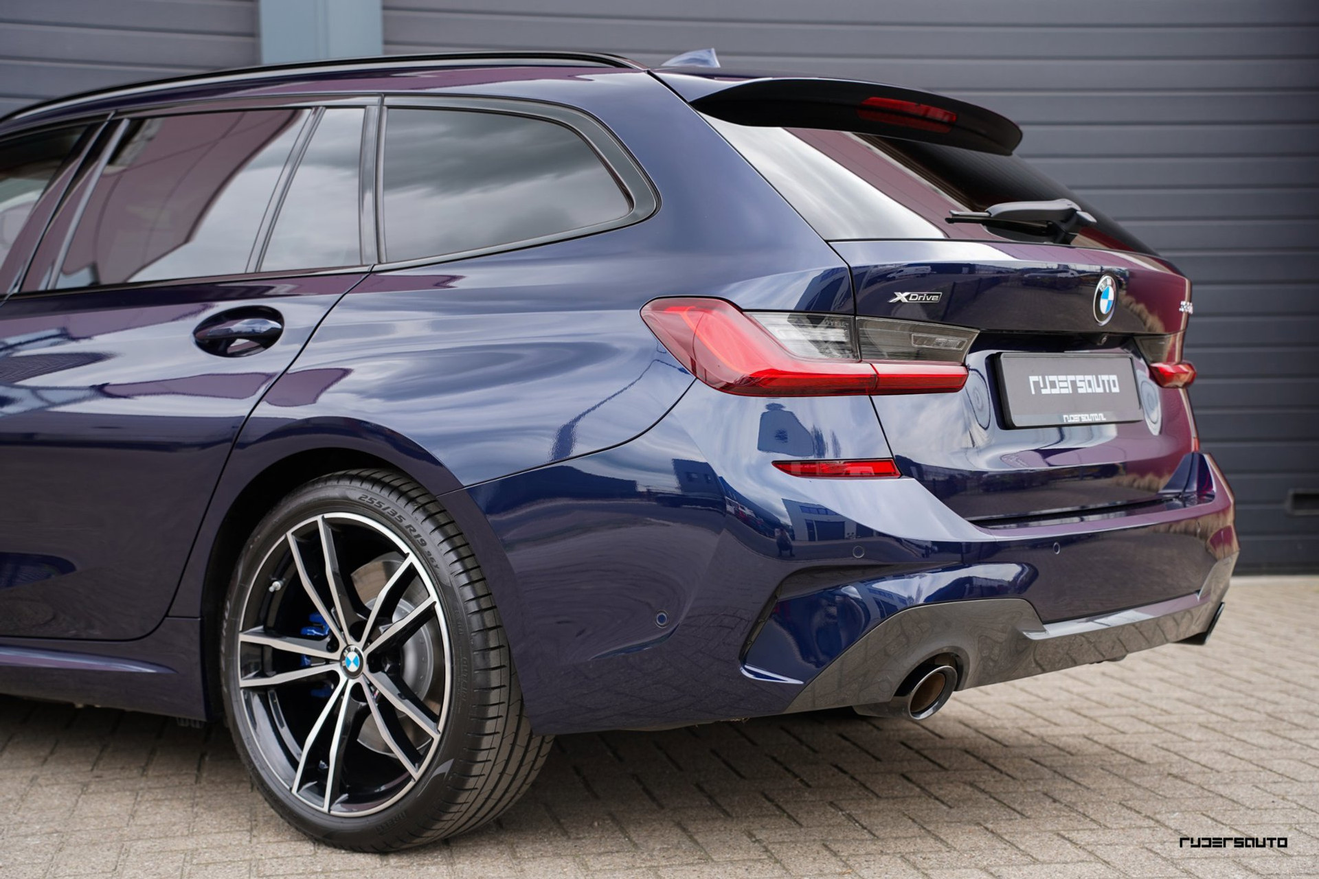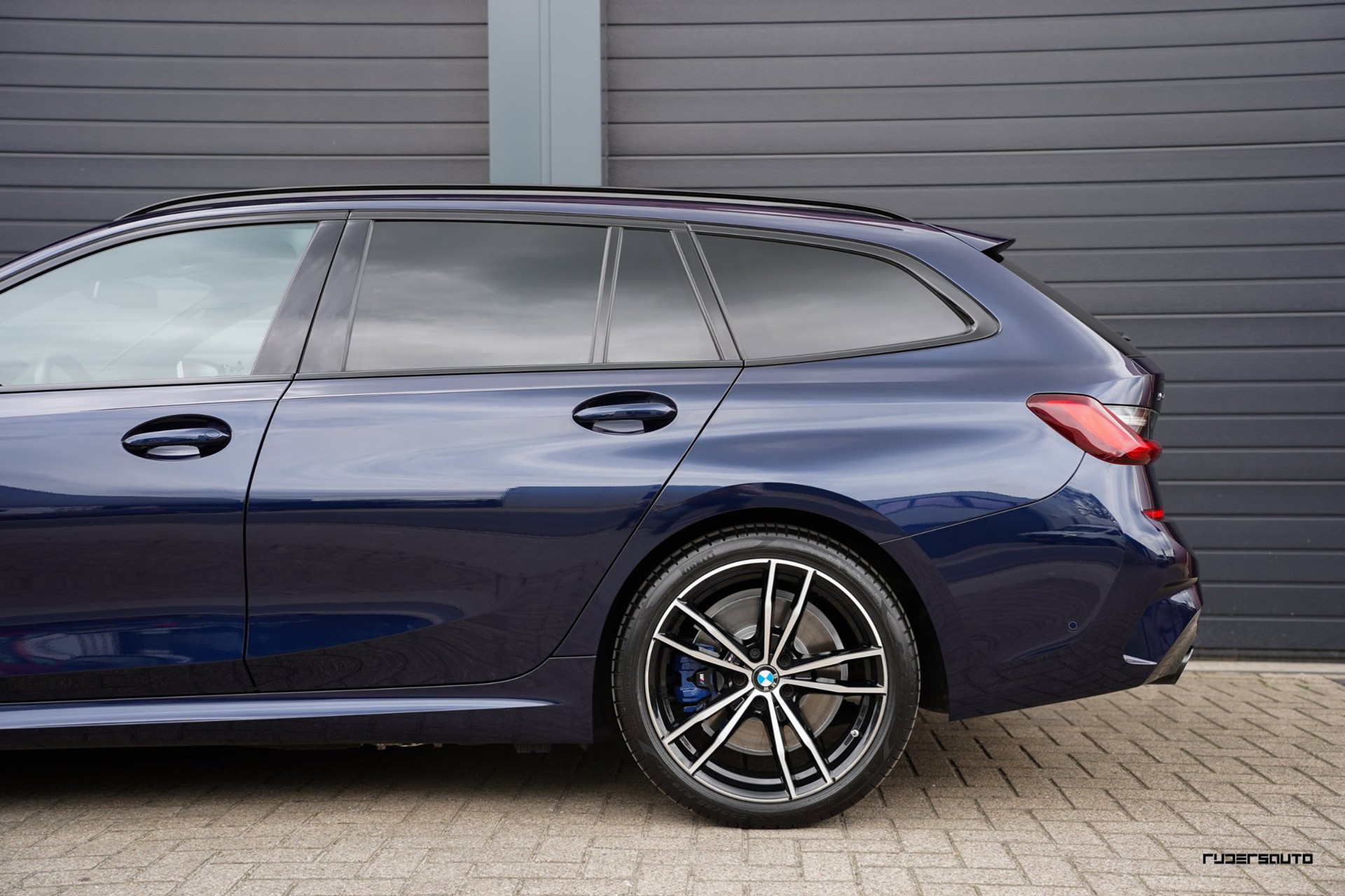 Rijk uitgevoerde BMW 330e xDrive Touring in Tanzanitblau met Cognac leder.