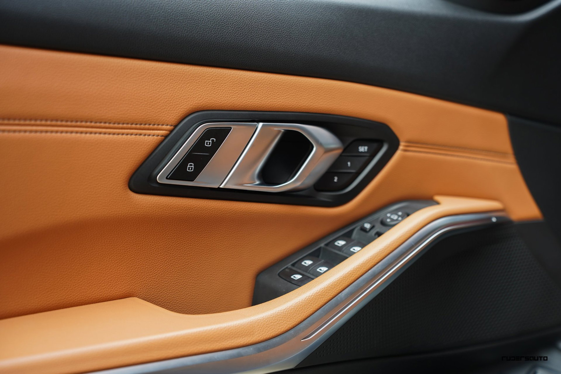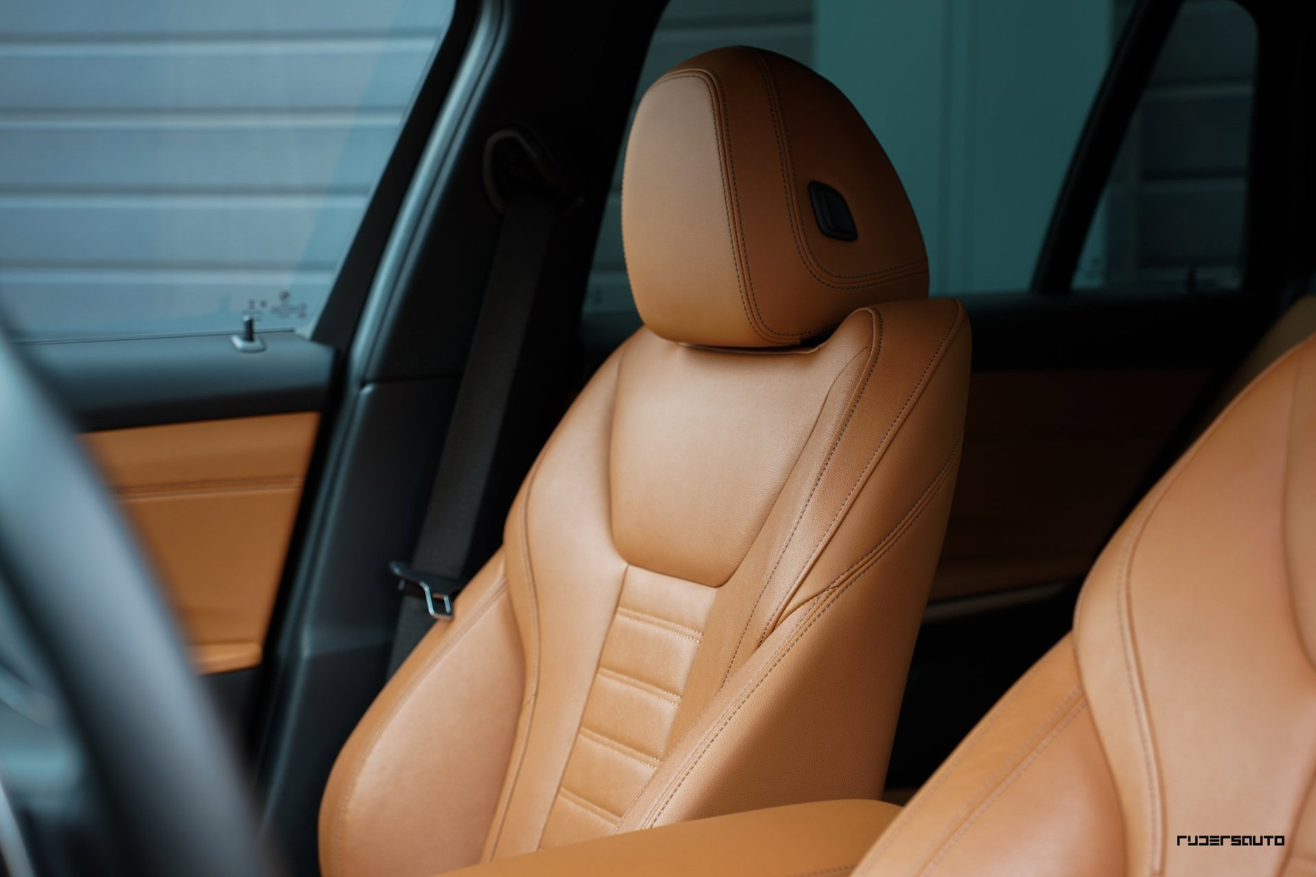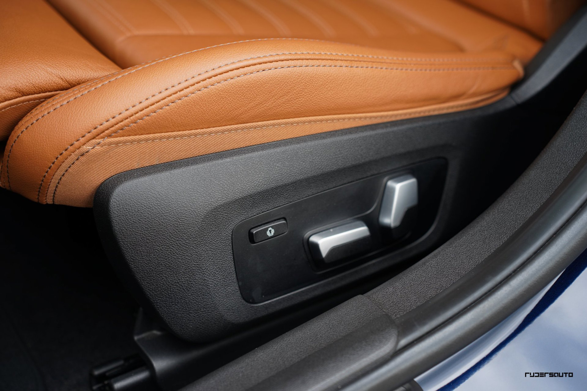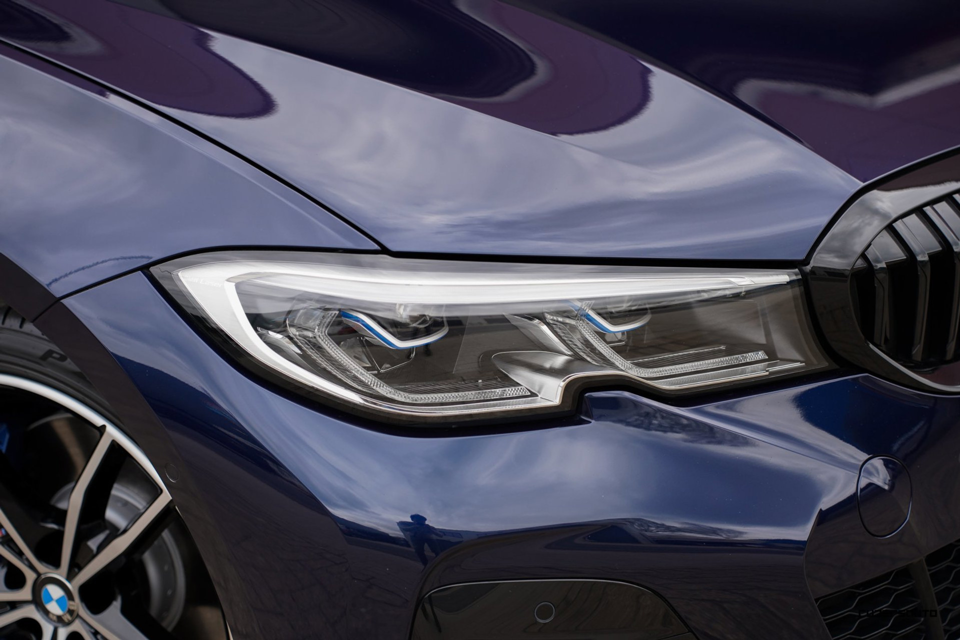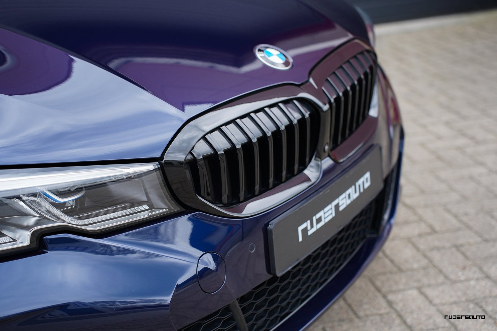 Rijk uitgevoerde BMW 330e xDrive Touring in Tanzanitblau met Cognac leder.