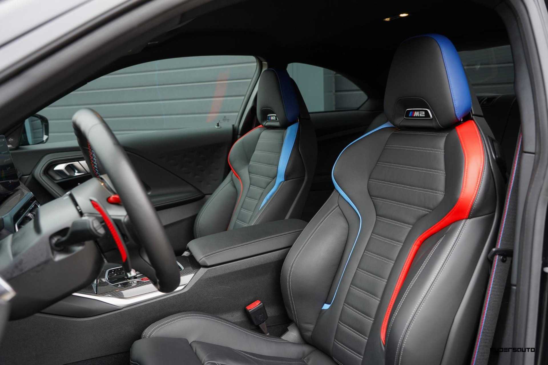 Toen vonden we deze M2, in Saphirschwarz, mét de optionele M Sportstoelen, carbon dak, carbon interieurlijsten, camera, Harman Kardon-audio, stuurverwarming en nog veel en veel meer.
