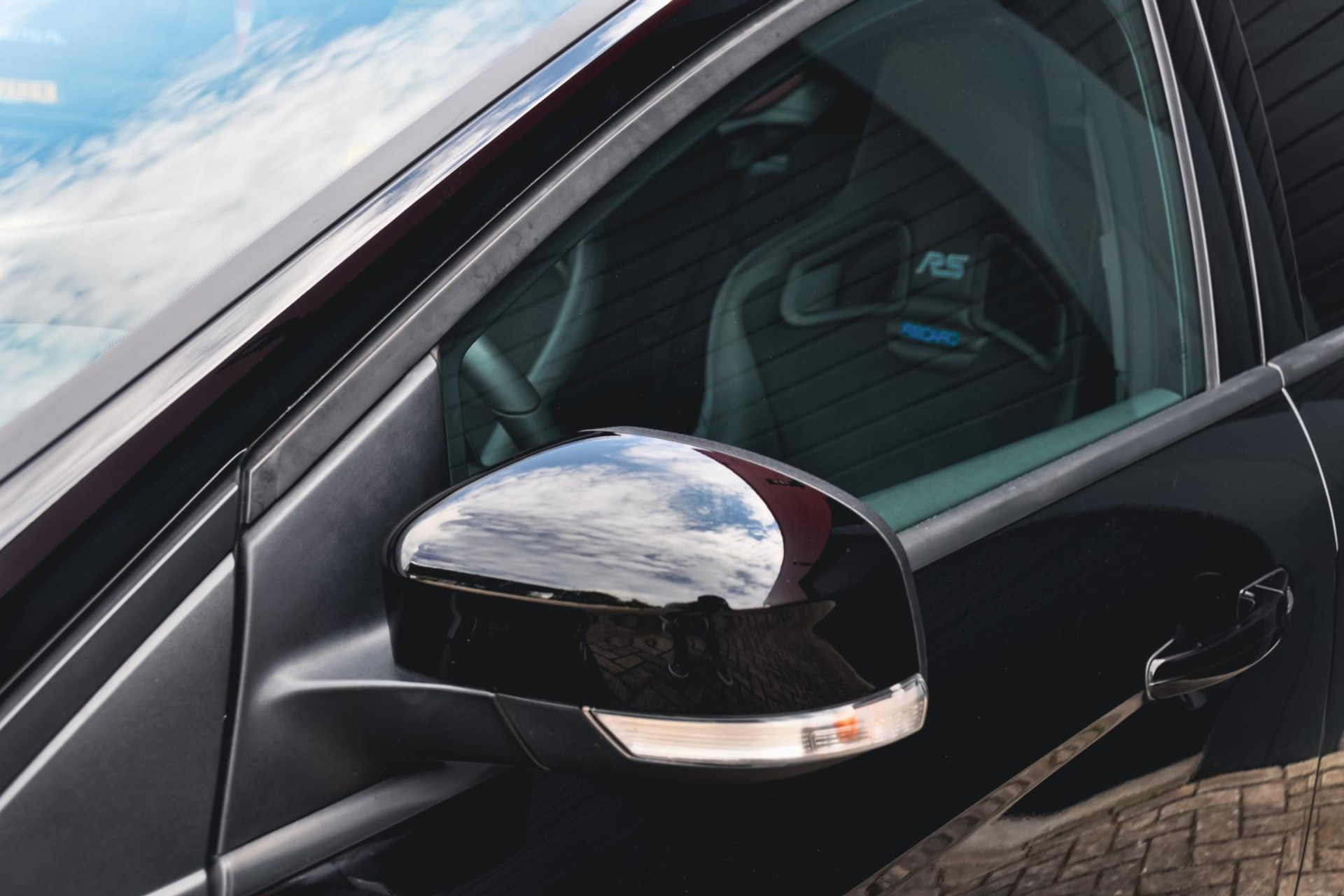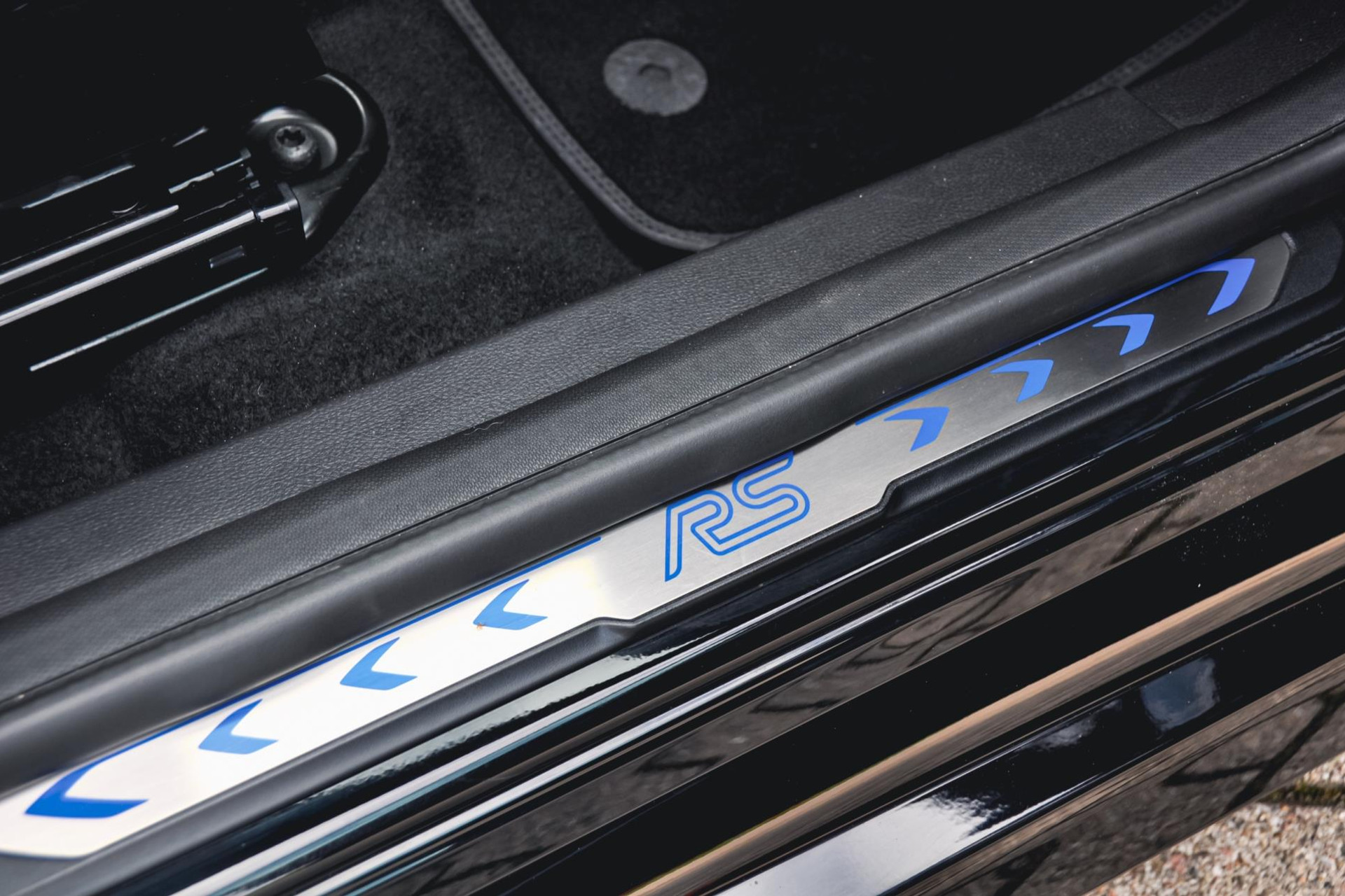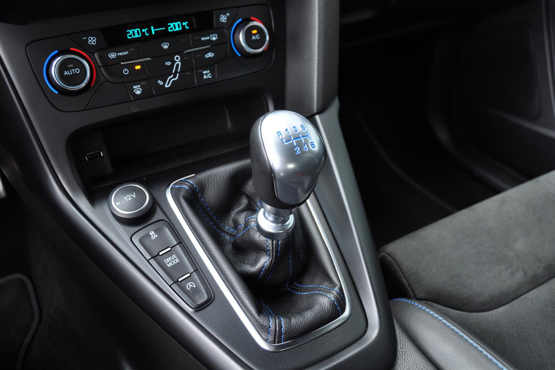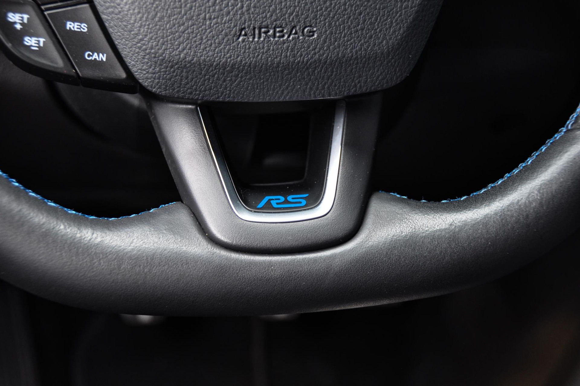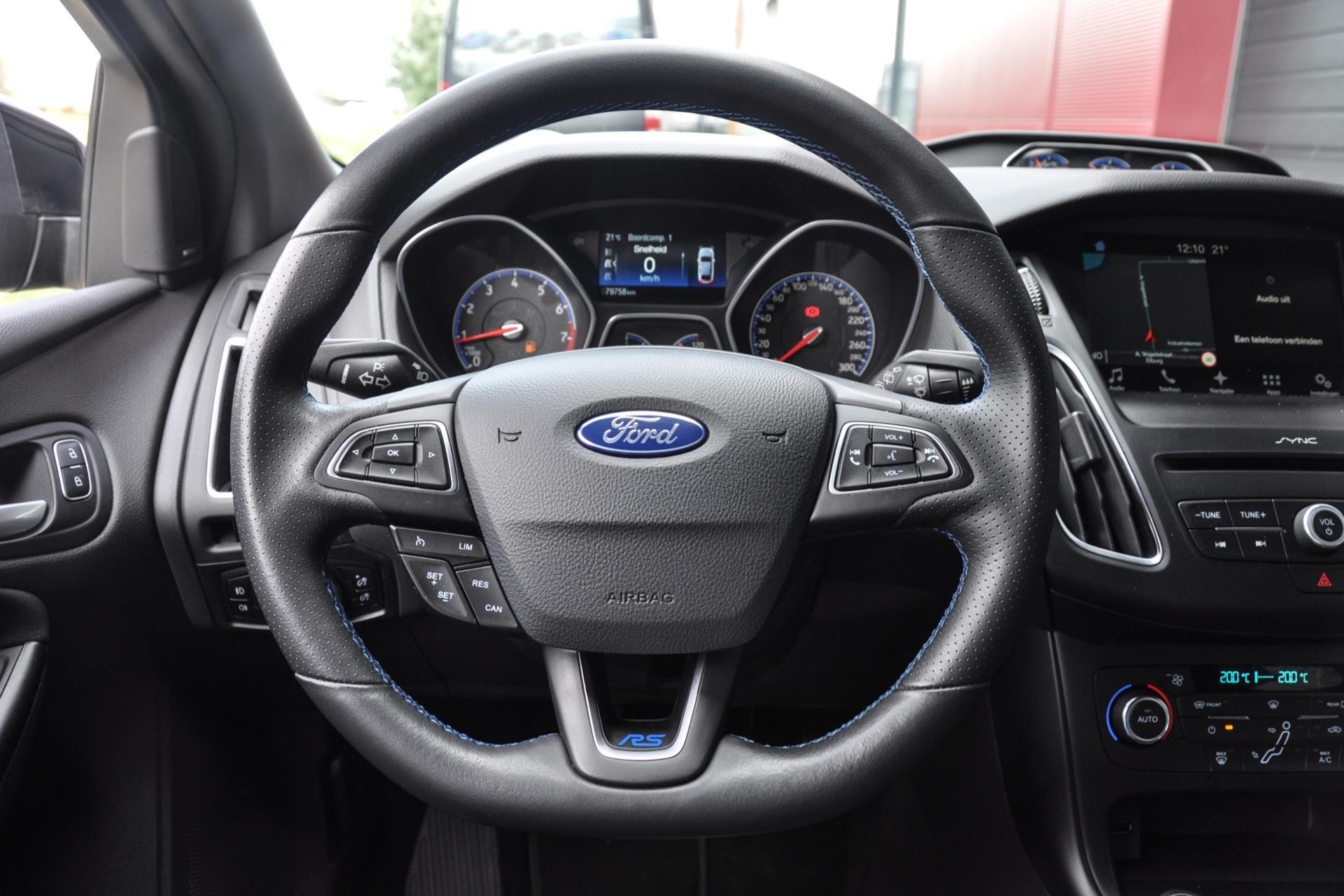 Ook is deze Focus RS voorzien van de gewilde Recaro schaalstoelen van leder en alcantara en afgewerkt met blauw stiksels. Deze blauwe stiksels vind je overal subtiel in het interieur terug, op de deurpanelen, het stuur, versnellingspook en ga zo maar door.