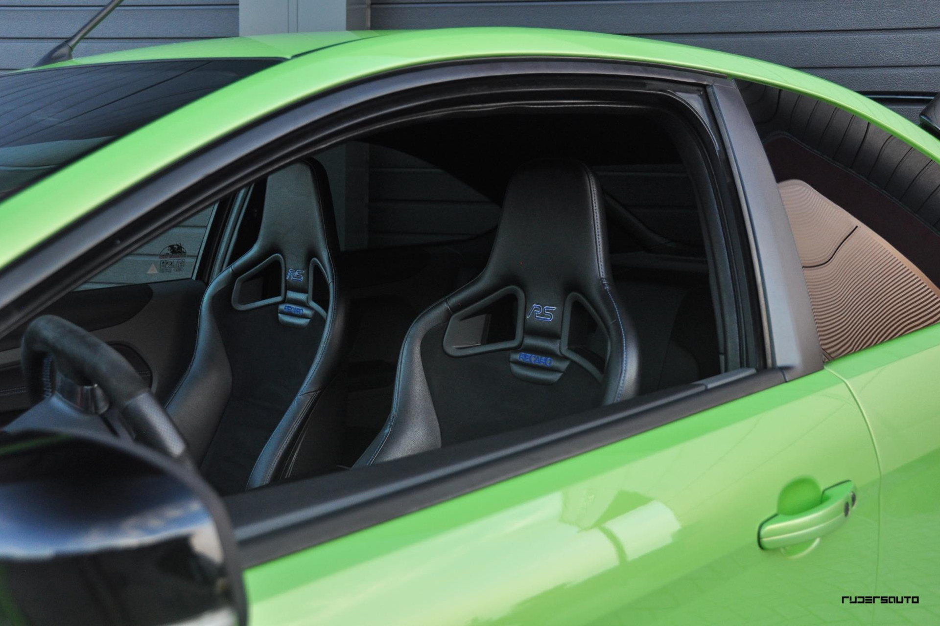 In de juiste specificatie, Ultimate green, zwarte wielen en de half leder / alcantara Recaro kuipstoelen.