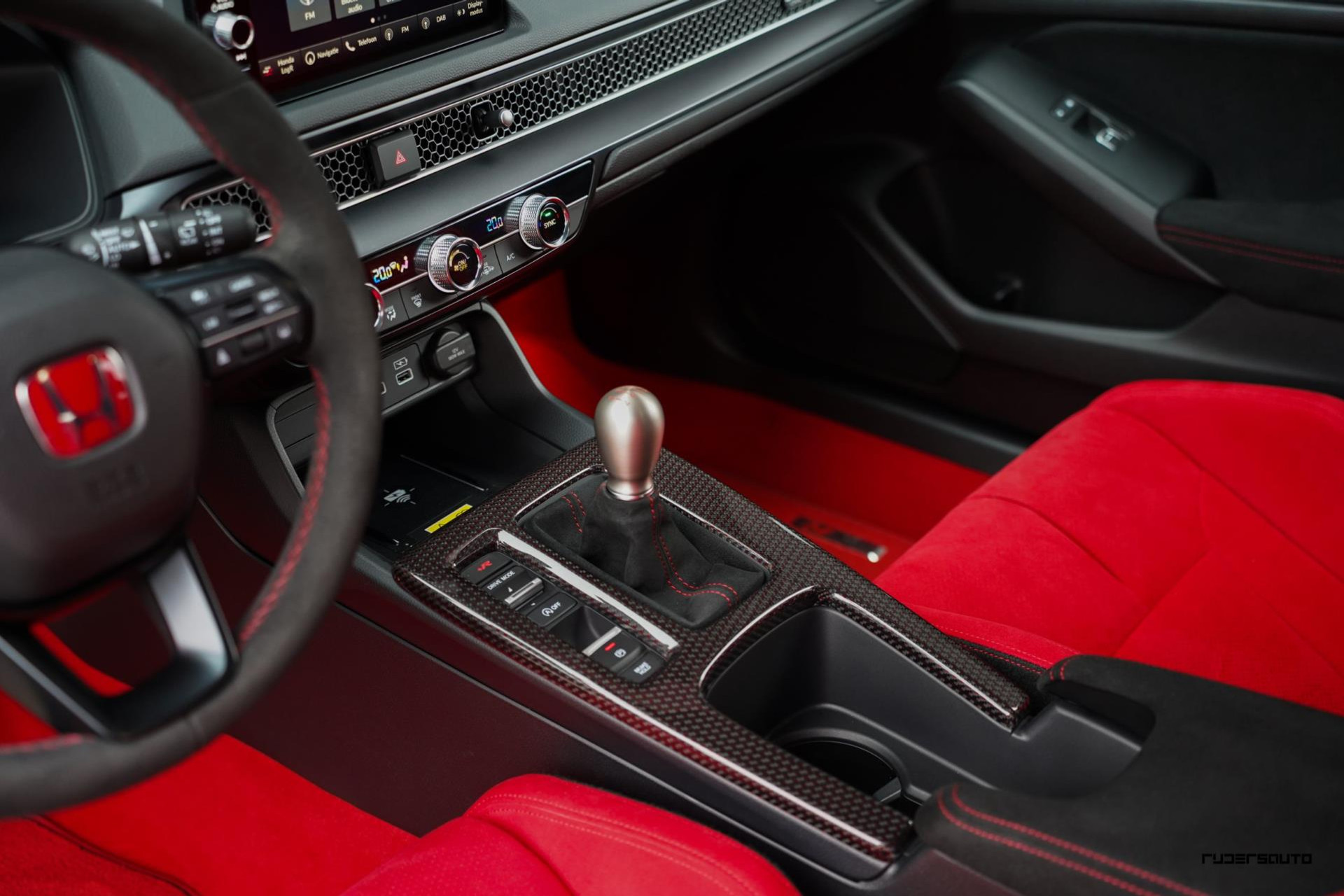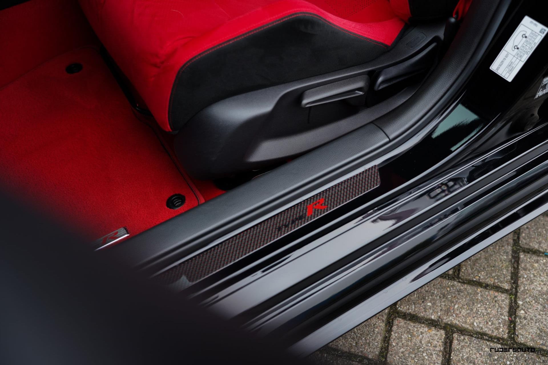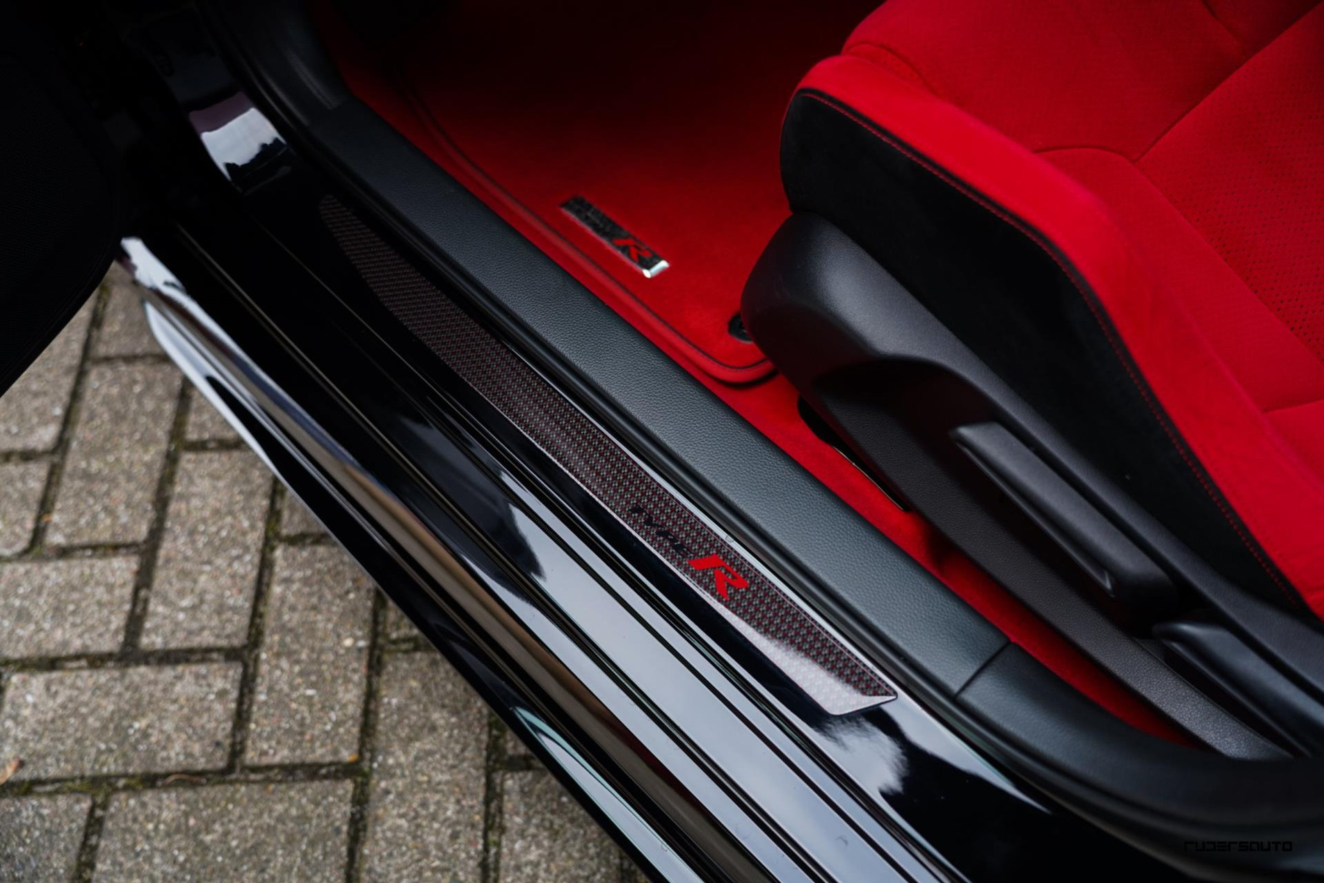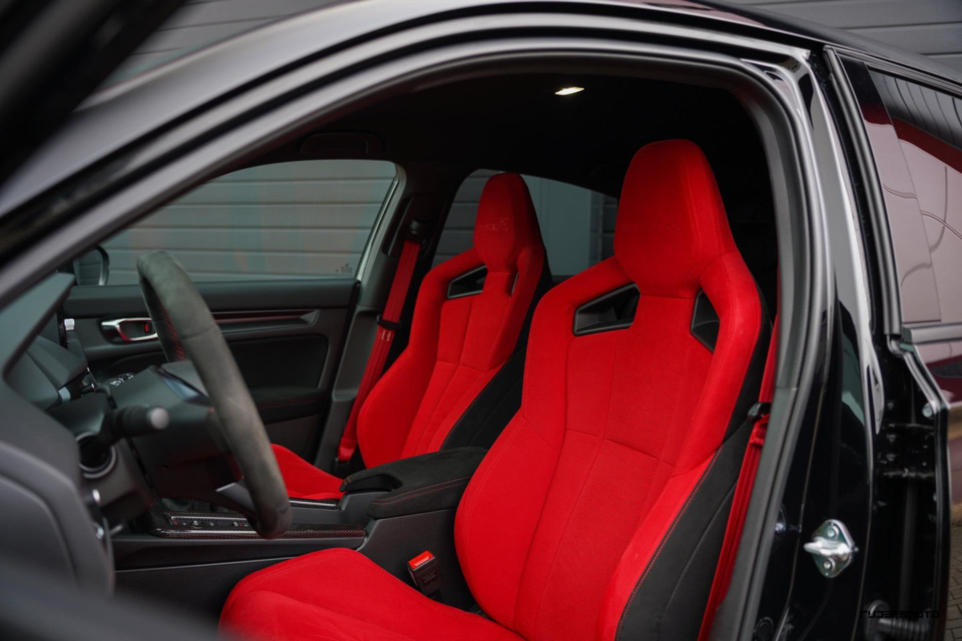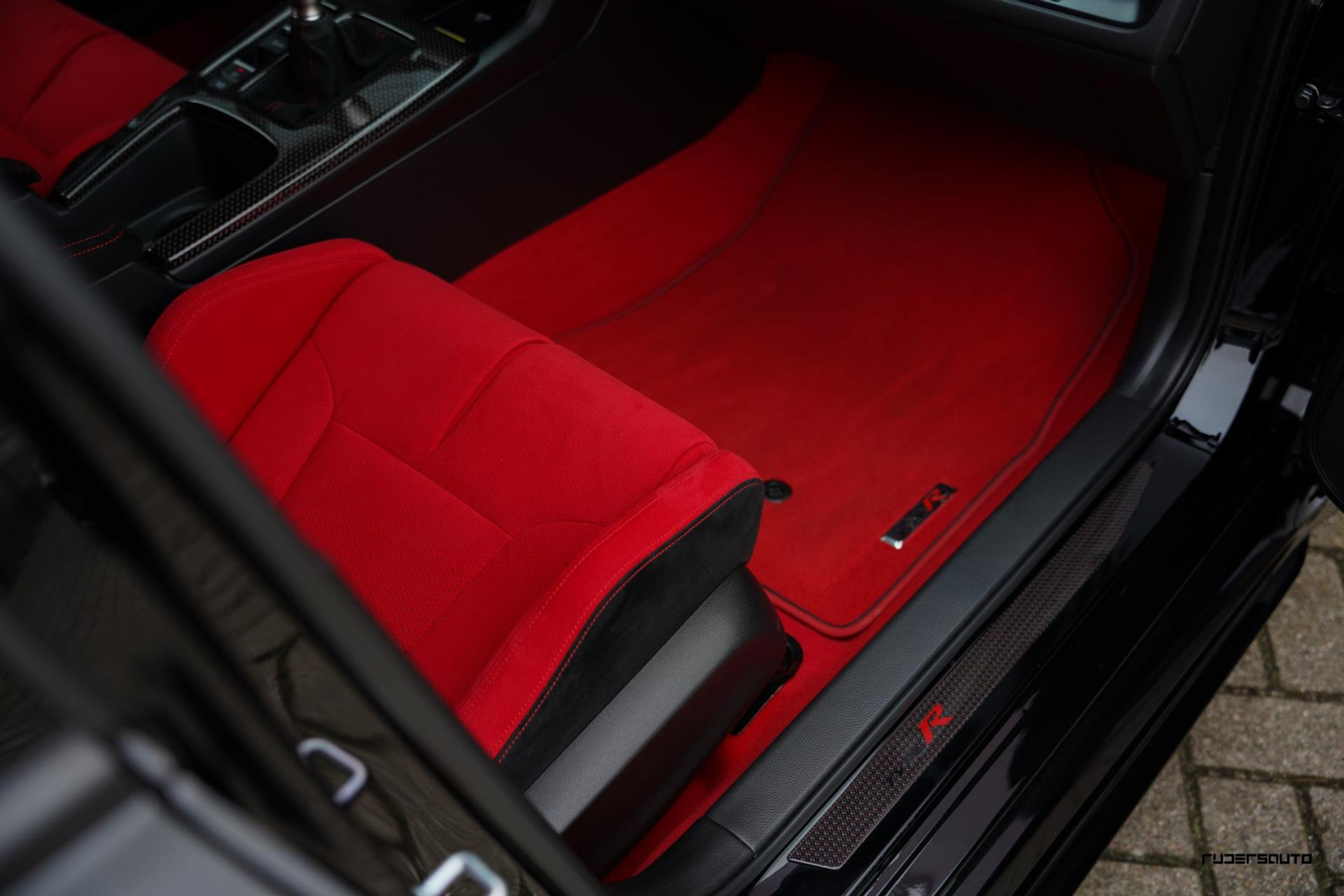 Voorzien van alle beschikbare fabrieksopties, waaronder het gewilde Carbon Pack, waarmee de achterspoiler, interieurlijsten en instaplijsten zijn uitgevoerd in carbon fiber. Een mooi detail is dat de typerende rode Honda-kleur ook subtiel terugkomt in het carbon.