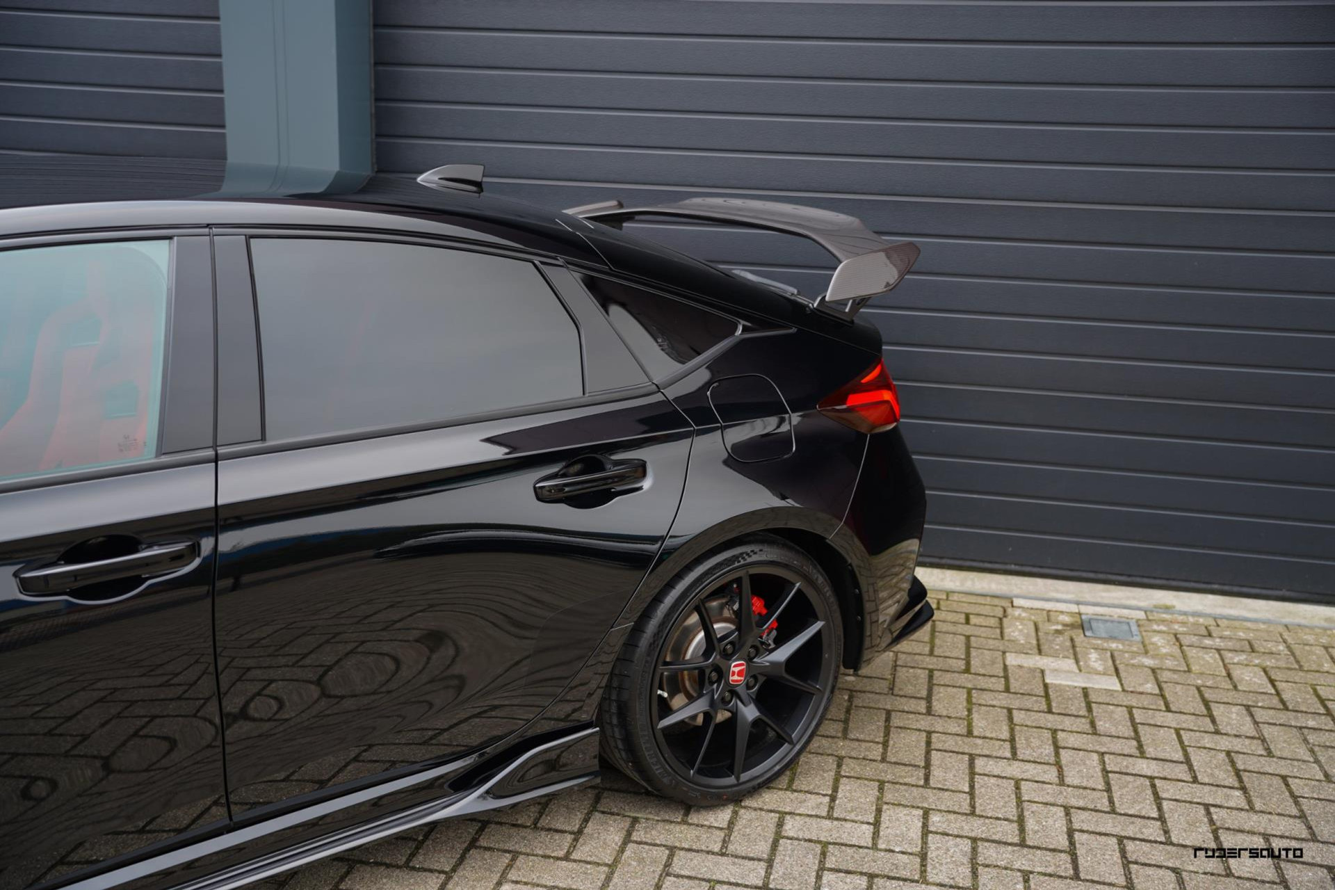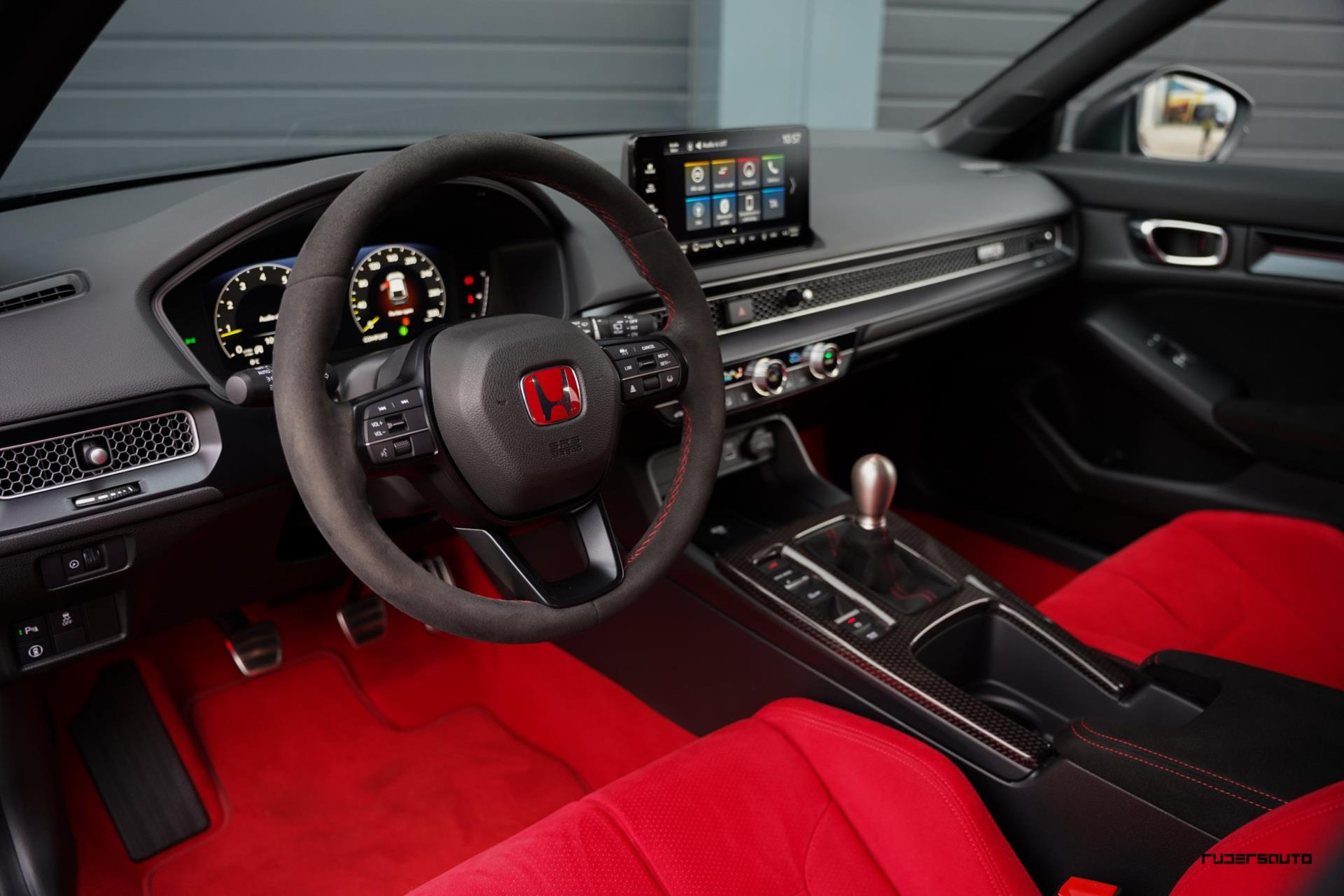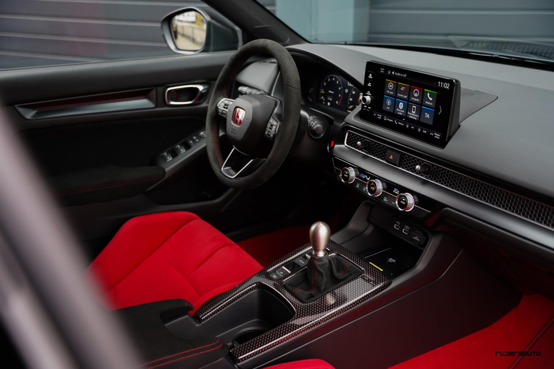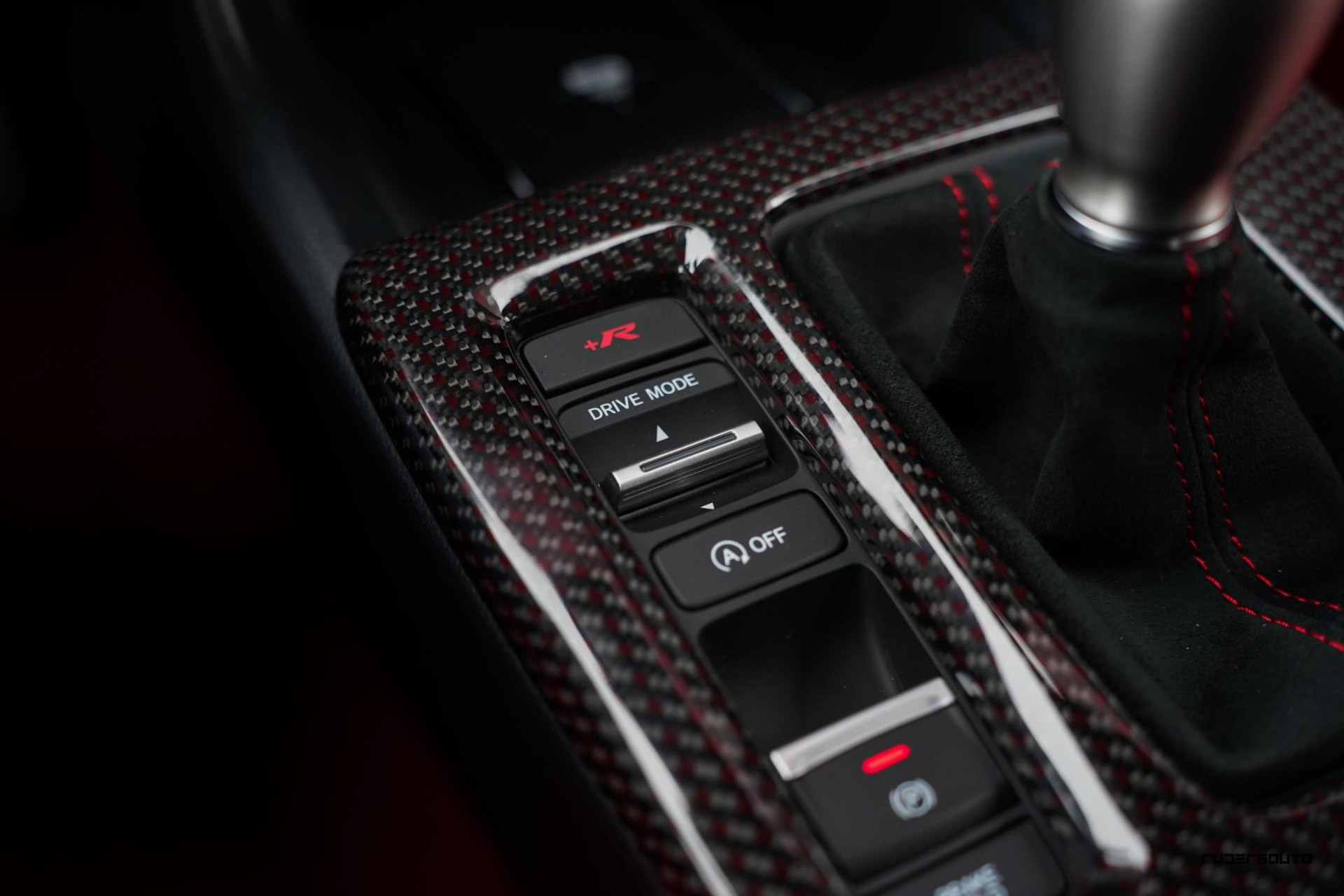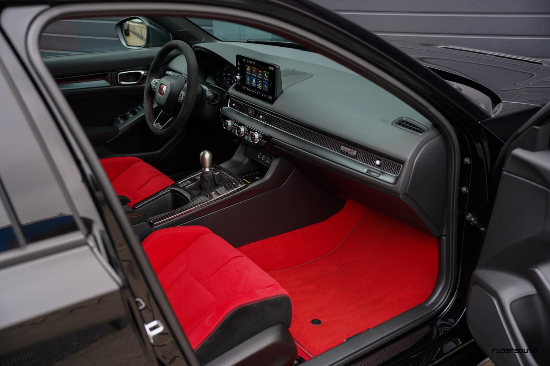 Voorzien van alle beschikbare fabrieksopties, waaronder het gewilde Carbon Pack, waarmee de achterspoiler, interieurlijsten en instaplijsten zijn uitgevoerd in carbon fiber. Een mooi detail is dat de typerende rode Honda-kleur ook subtiel terugkomt in het carbon.
