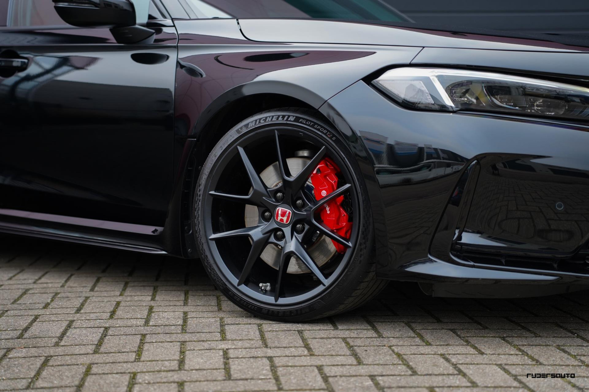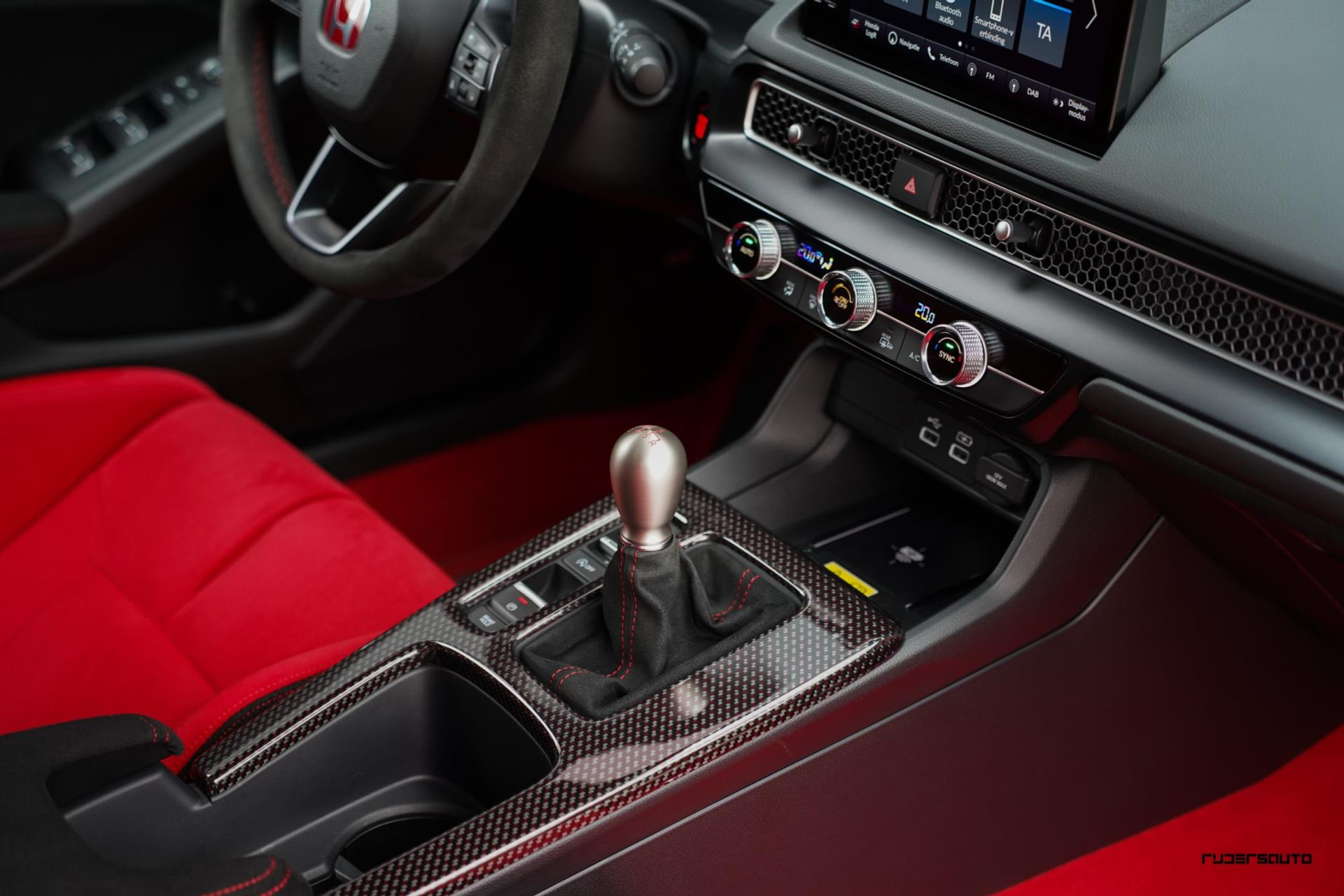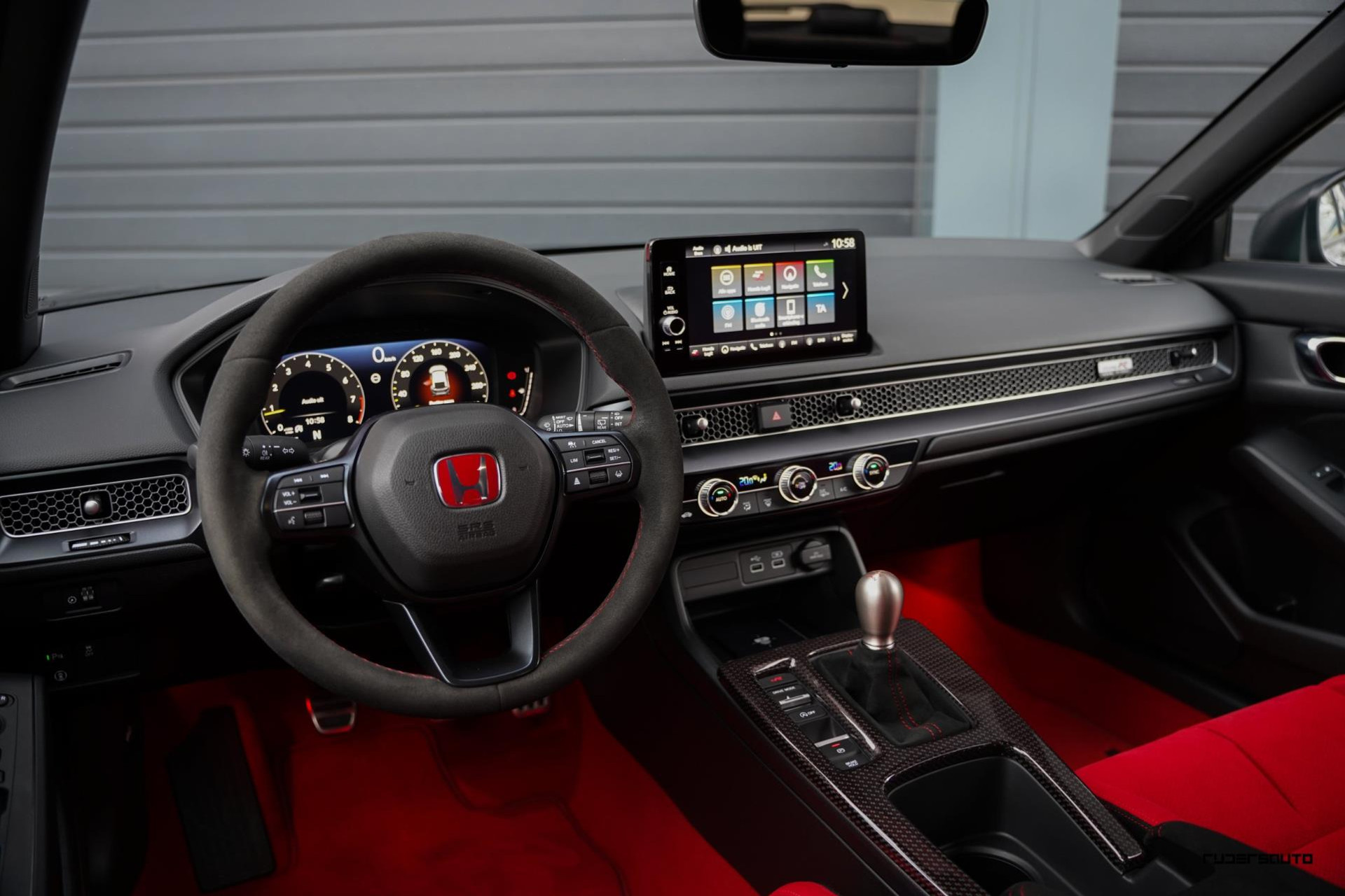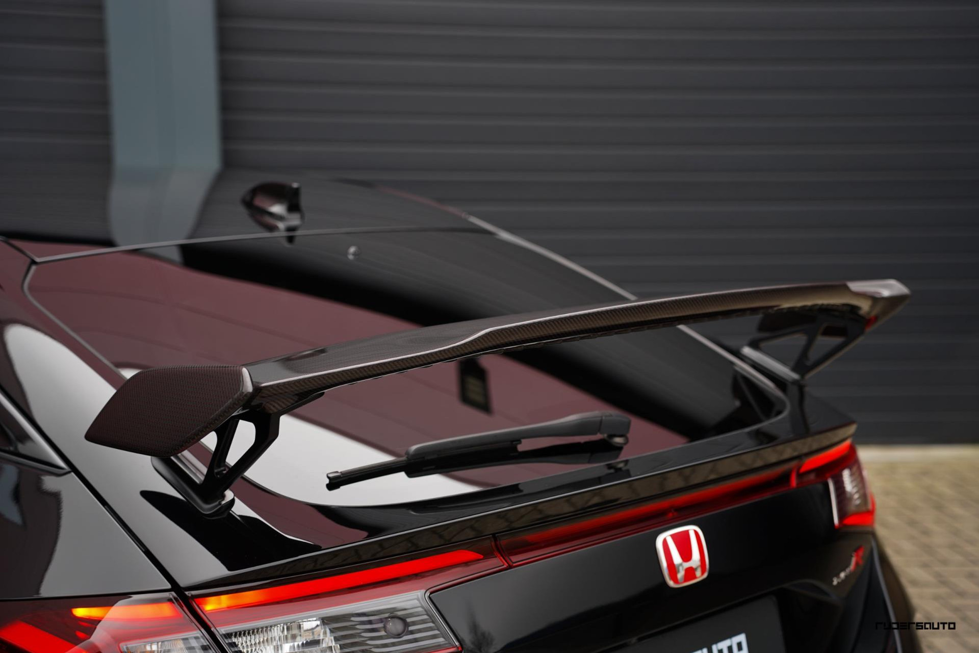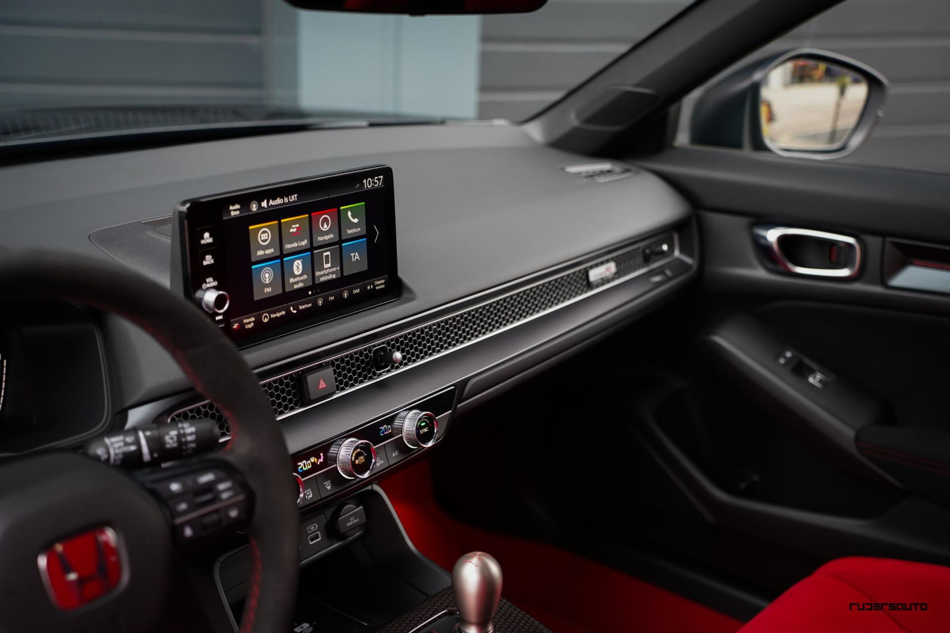 Voorzien van alle beschikbare fabrieksopties, waaronder het gewilde Carbon Pack, waarmee de achterspoiler, interieurlijsten en instaplijsten zijn uitgevoerd in carbon fiber. Een mooi detail is dat de typerende rode Honda-kleur ook subtiel terugkomt in het carbon.