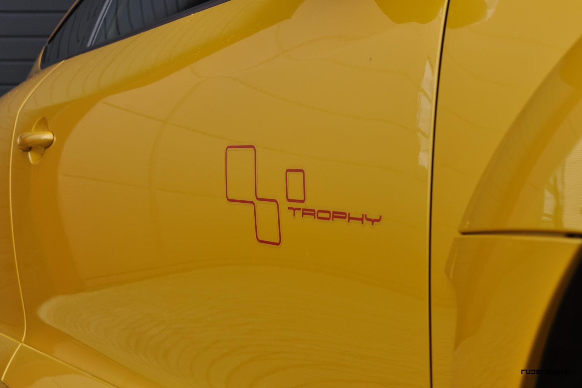 De Trophy kenmerkt zich door meer motorvermogen (265 in plaats van 250 pk), veel gele accenten (stoelen, gordels, toerenteller) en subtiele wijzigingen aan de buitenkant zoals de 19 inch wielen met rode bies, trophy livery en natuurlijk de speciale exterieurkleur die uitsluitend op de Trophy leverbaar was.