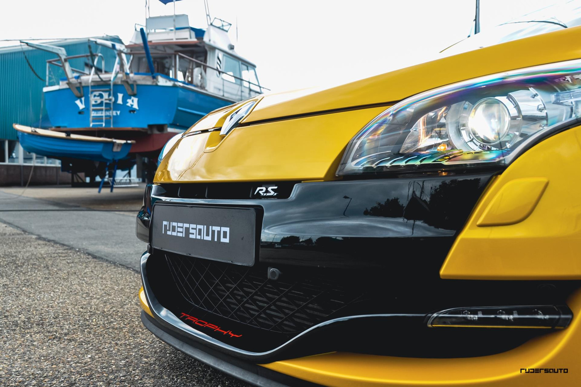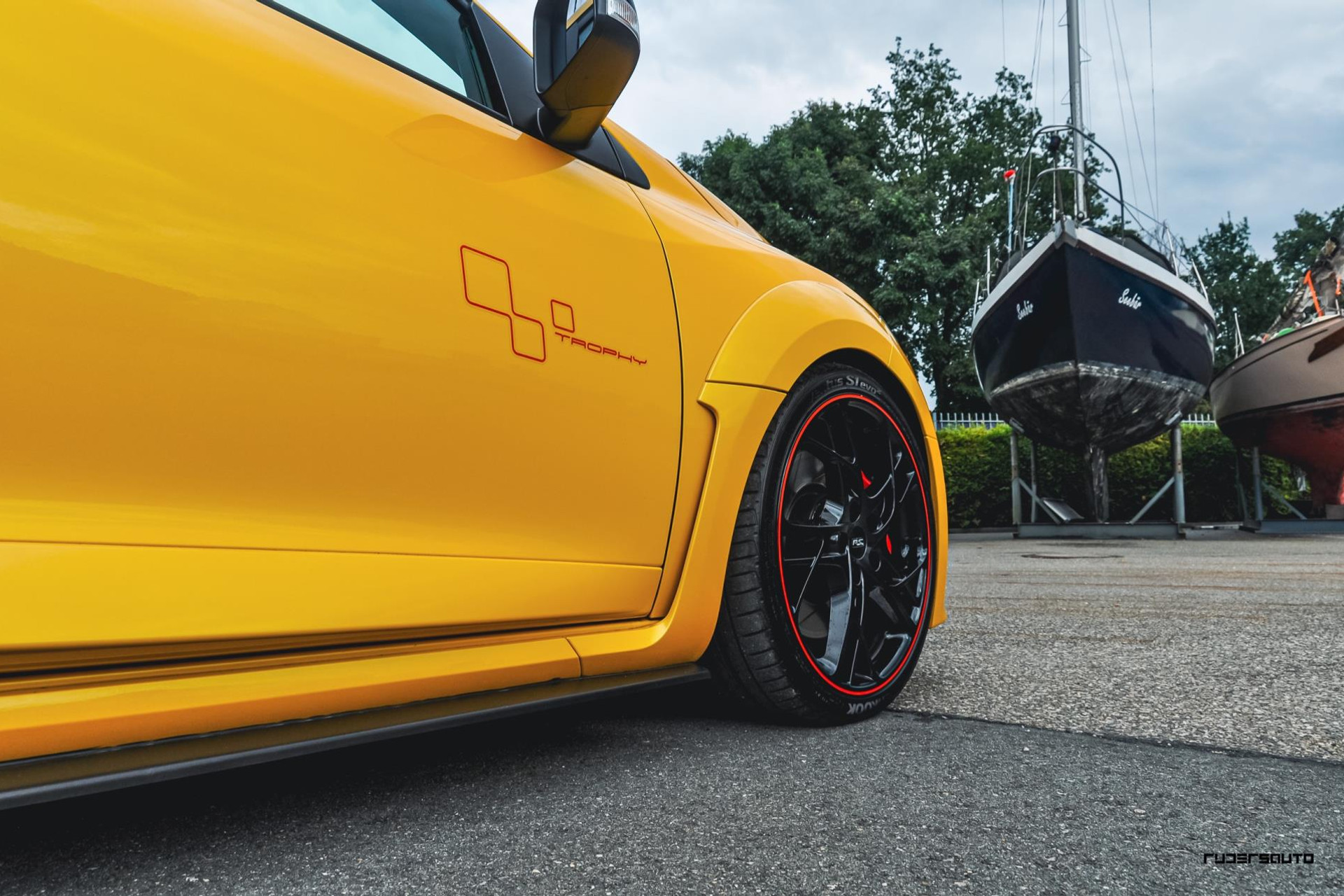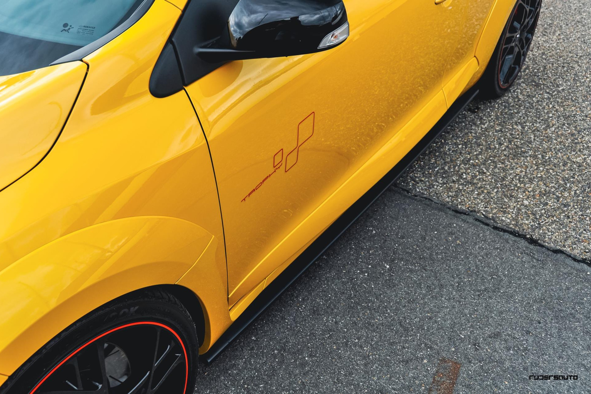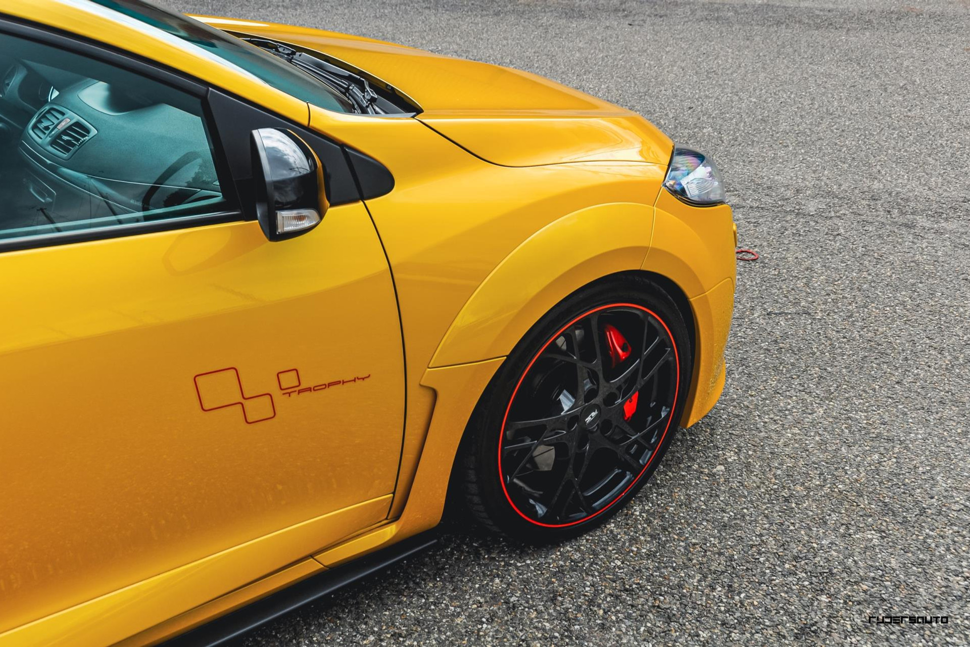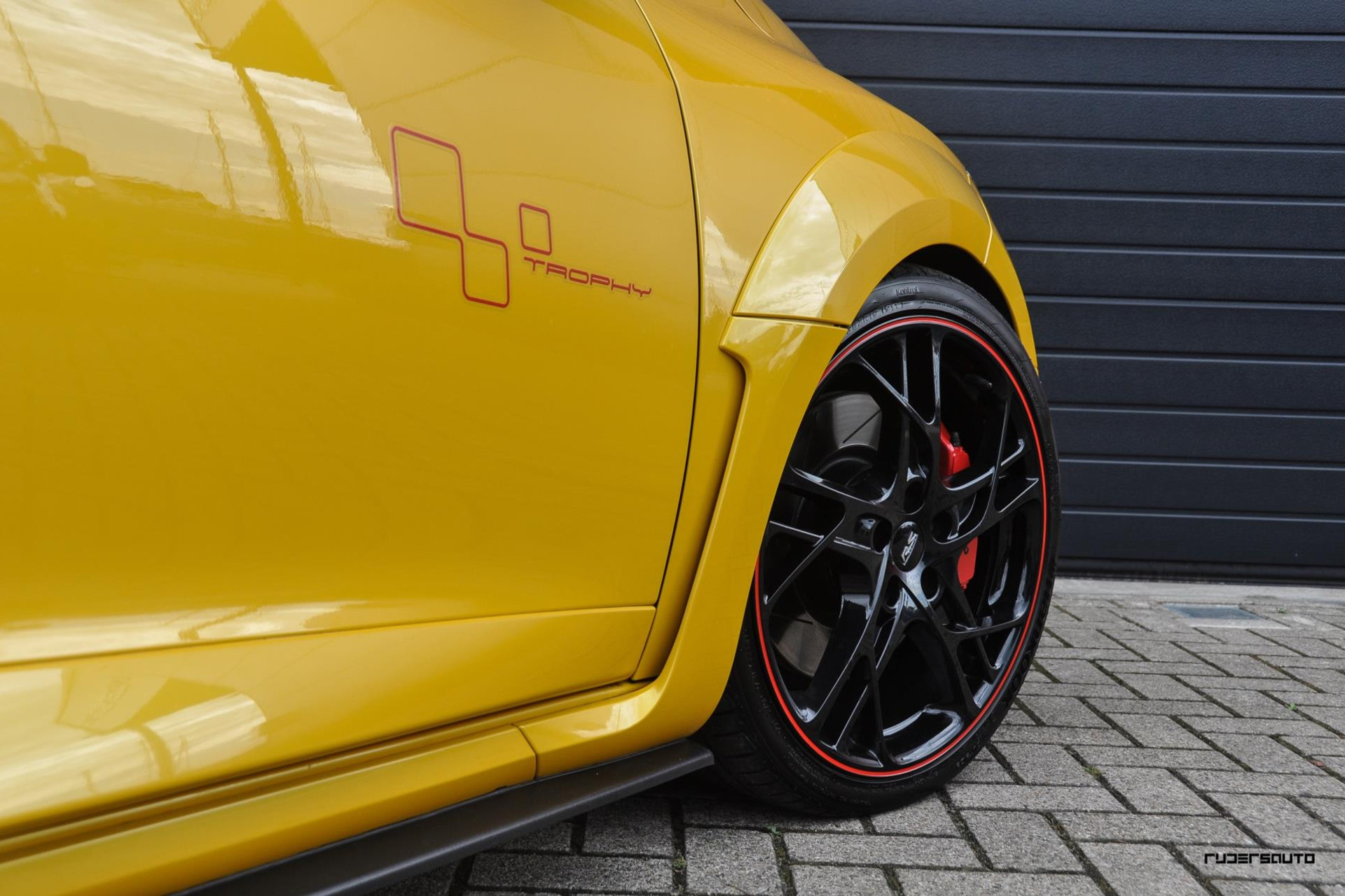 Om te beginnen de exterieur kleur Jaune Sirius, de beste kleur voor op een Renault Sport wat ons betreft en typerend voor een Trophy.