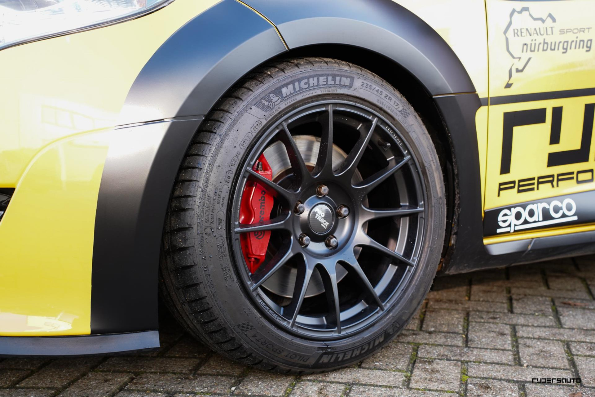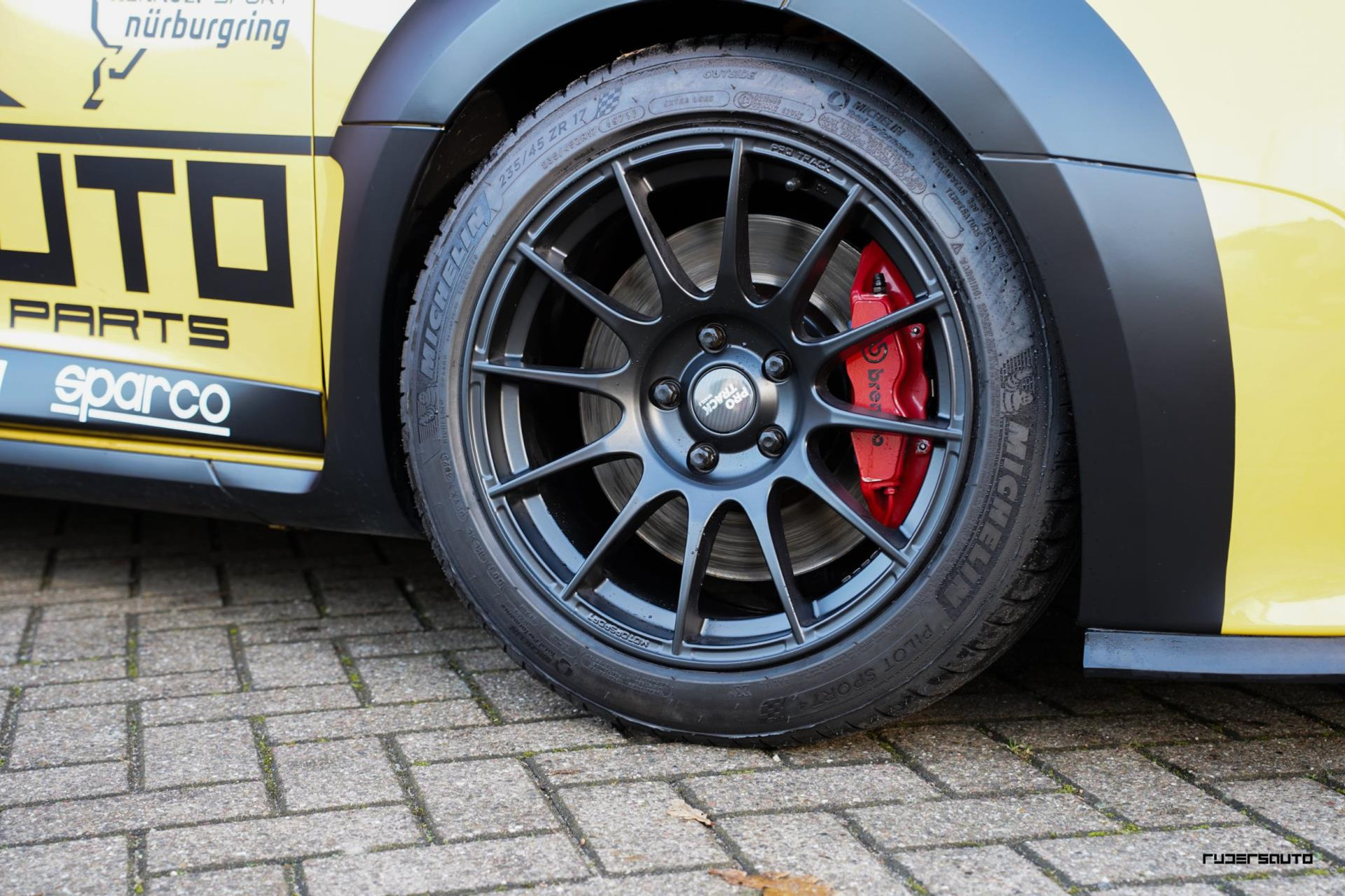 Auto kan geleverd worden op 18 inch Protrack met Nankang AR-1 Semislicks of optioneel Protrack ONE 17 inch met Michelin Pilot Sport 4s regen / straat set.