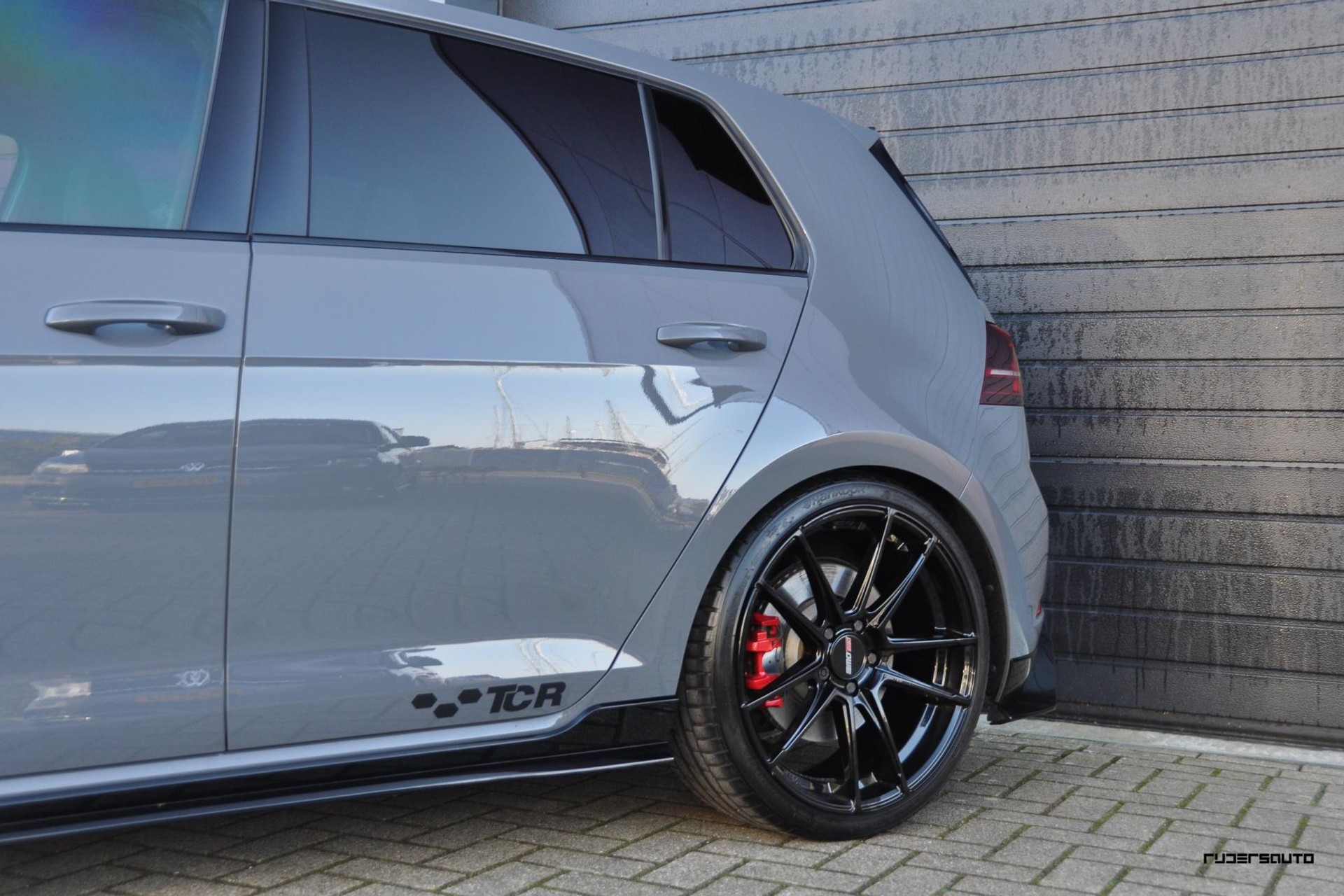 Typerend voor deze uitvoering zijn de hoogglans zwarte details zoals de TCR diffuser, side skirts, spoiler en front lip.